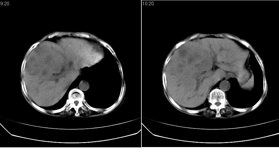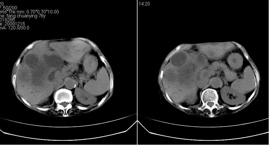 以下是引用sunbin在2009-12-20 13:03:00的发言:[br]考虑肝癌,肝囊肿,建议增强。