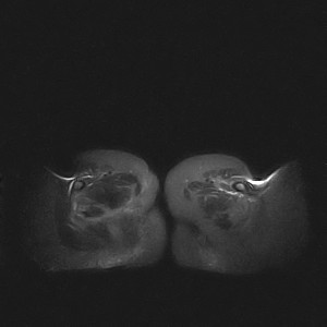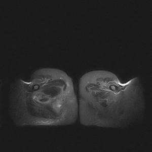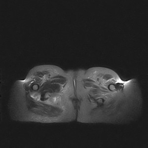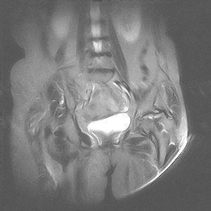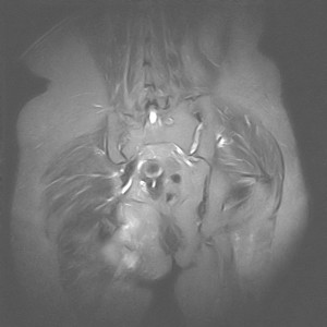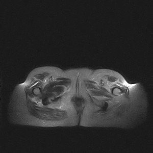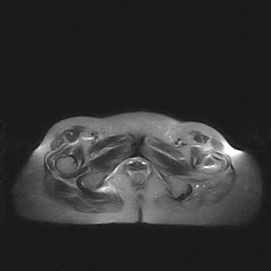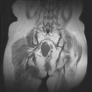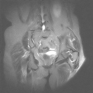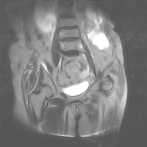 图像太差了 1、右侧臀肌旁脓肿? 建议增强 2、左侧股骨头坏死并半脱位