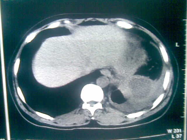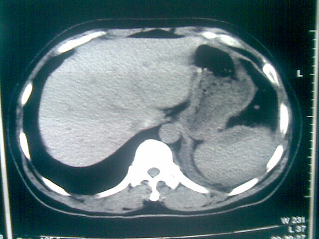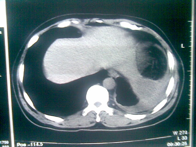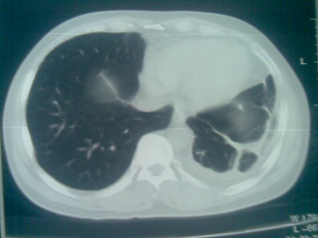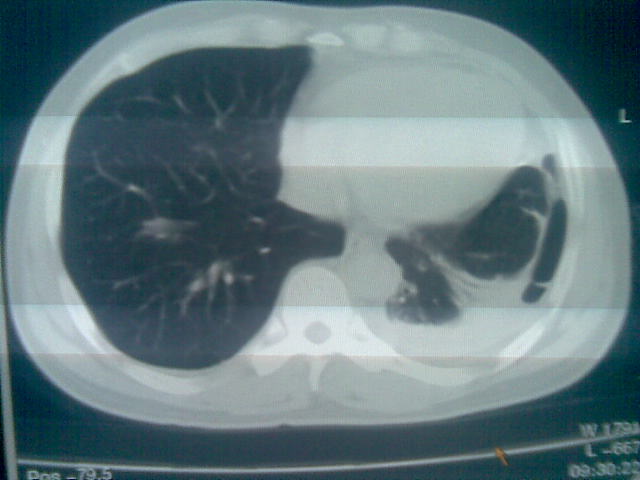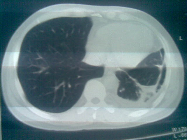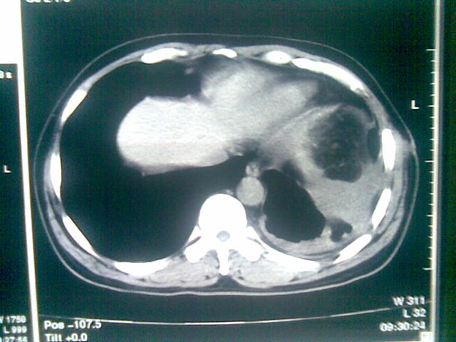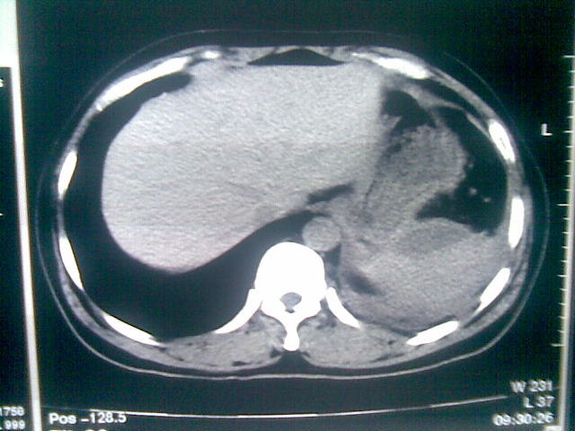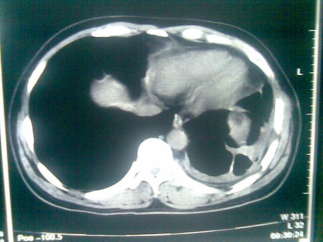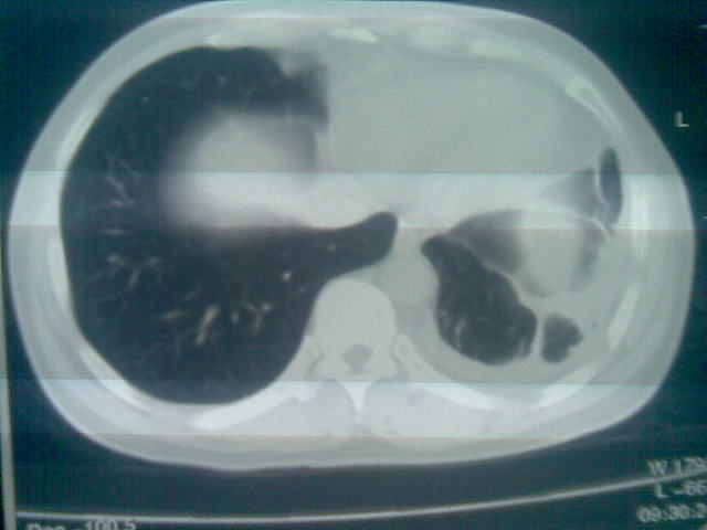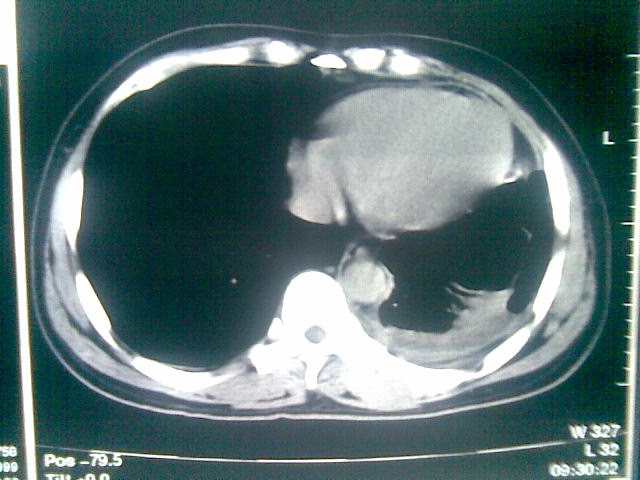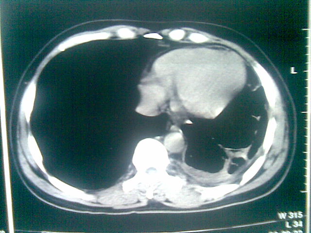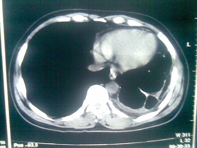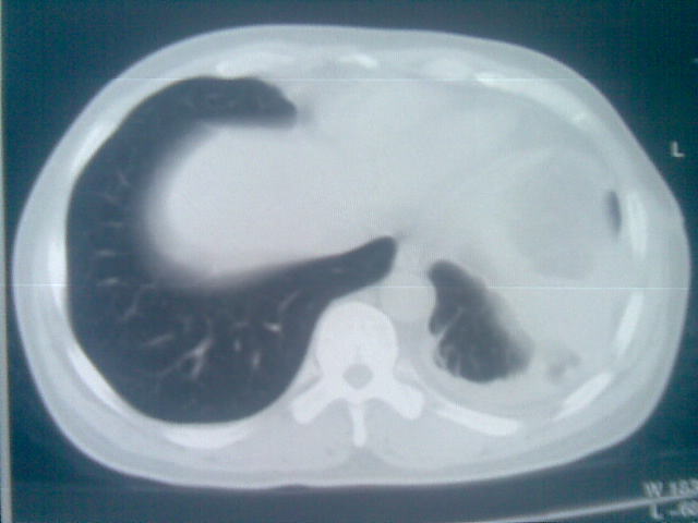 CT23981:男,38岁阑尾炎术后透视胸腔积夜!做CT如下!积液包