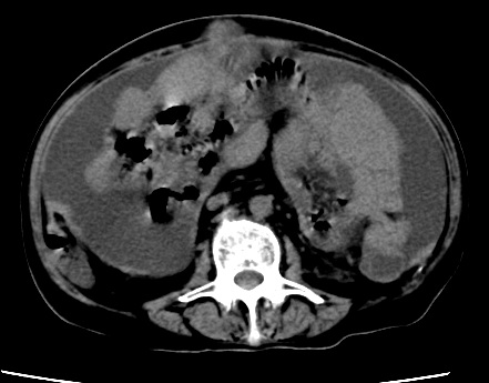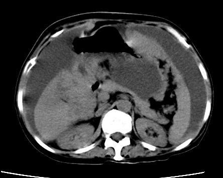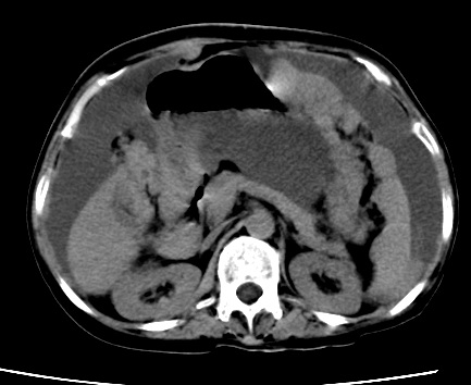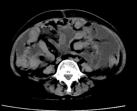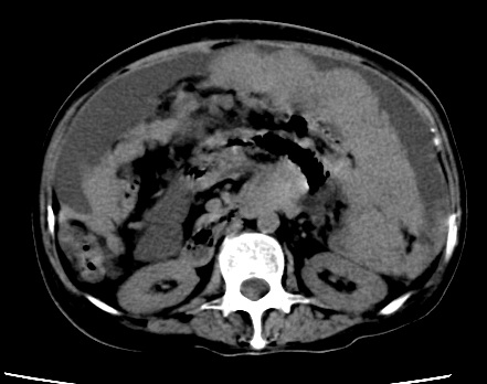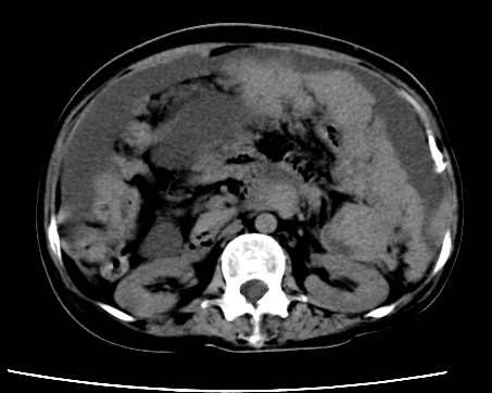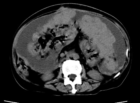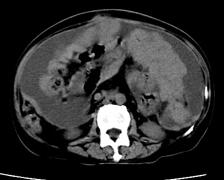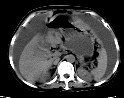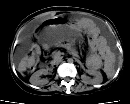 以下是引用随光逐影在2010-1-5 16:00:00的发言:[br]1)结合病史,考虑腹膜及网膜转移瘤。2)肝脏多发性低密度灶,不排除转移瘤。3)大量腹水。