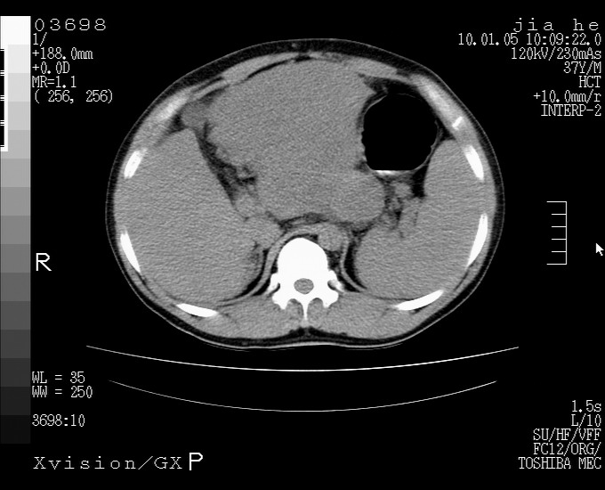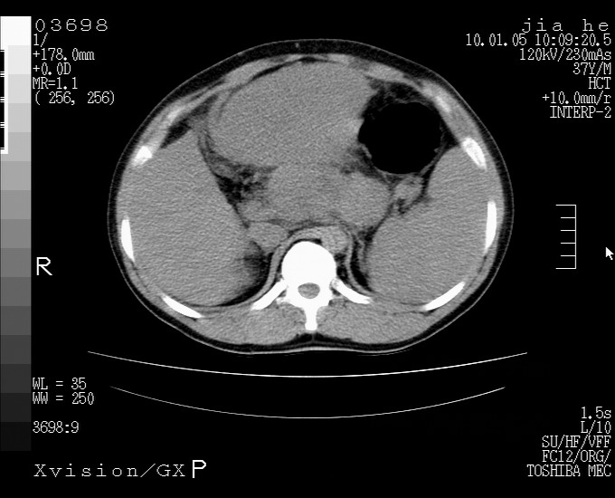 CT23988:男,40岁,B超提示腹部肿物,请各位老师给看看。