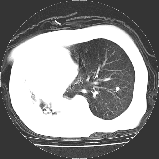以下是引用老爱克斯新网客在2010-1-5 20:00:00的发言:[br]1.右侧损毁肺伴胸膜钙化,2.左肺小结节灶,良性可能大,注意复查。3.肝脏左叶囊肿。4.先天性一侧肺不发育待出外(右侧胸廓无明显塌陷)。对比原片应该非常有帮助。