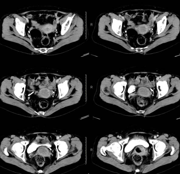 子宫颈体积增大,宫颈壁不均匀性增厚,且不均匀性强化。考虑为宫颈ca。