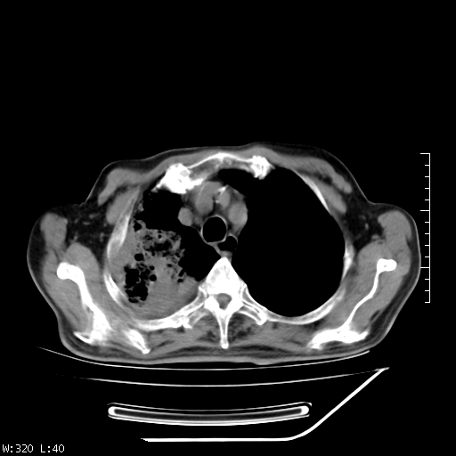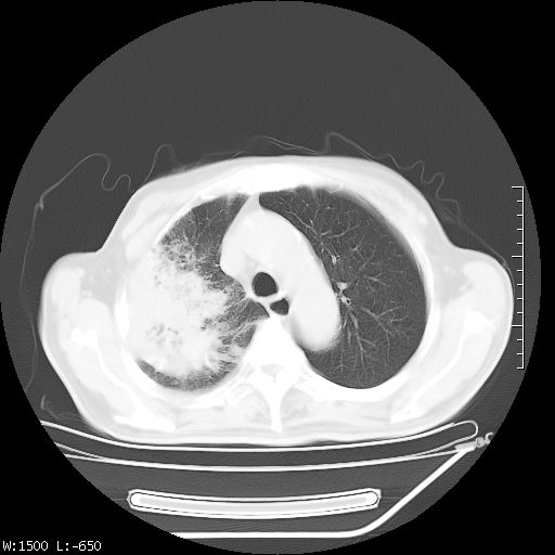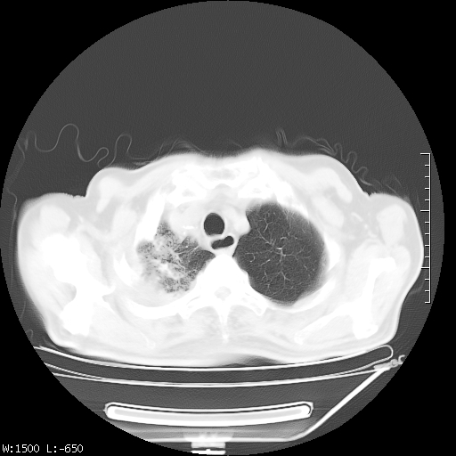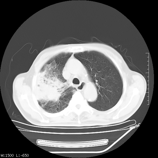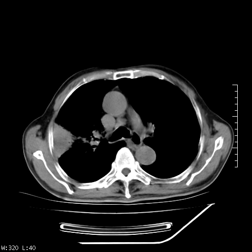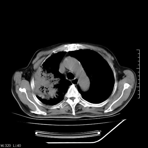以下是引用muzi888在2010-1-6 9:43:00的发言:[br]右上肺实变,与胸膜关系密切,右肺容积缩小,隆突下淋巴结增大,考虑1 肺结核 2 肺癌