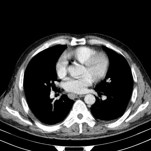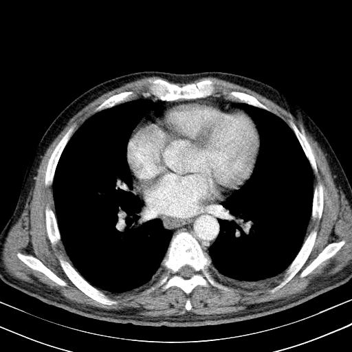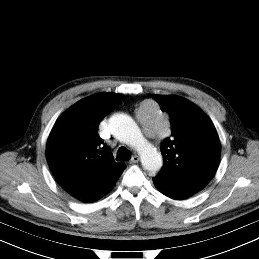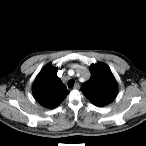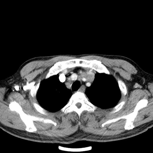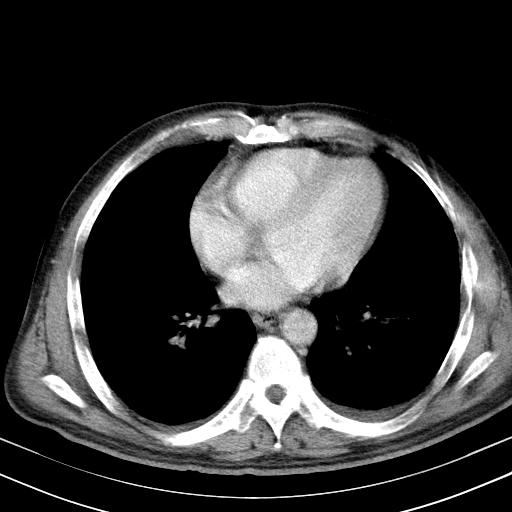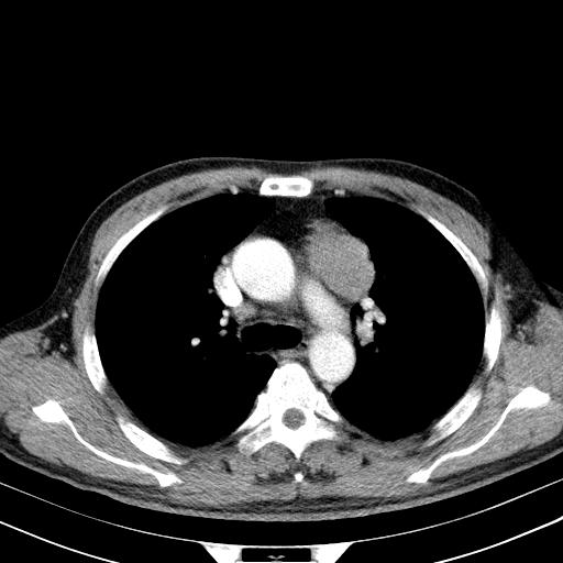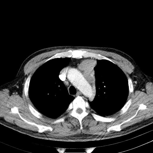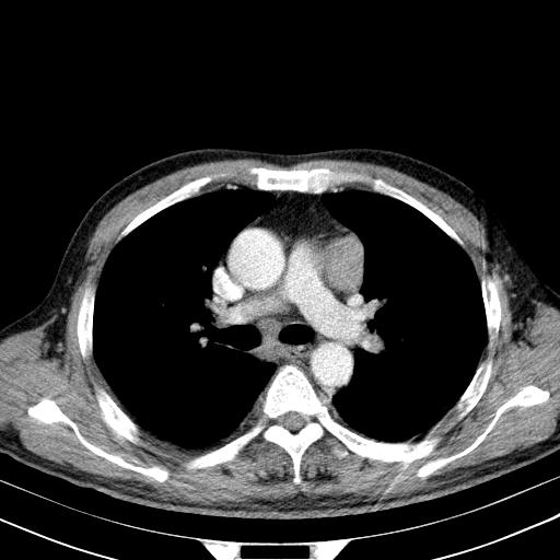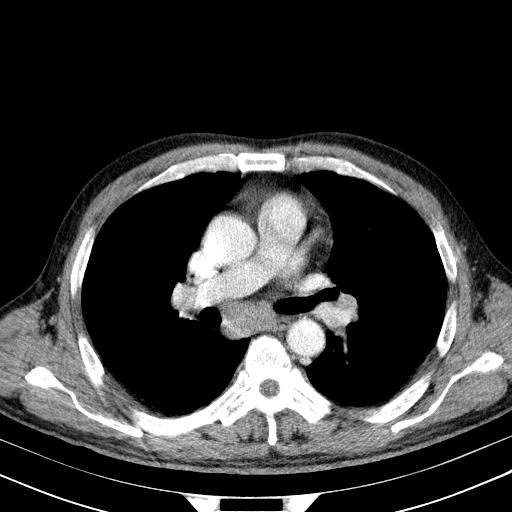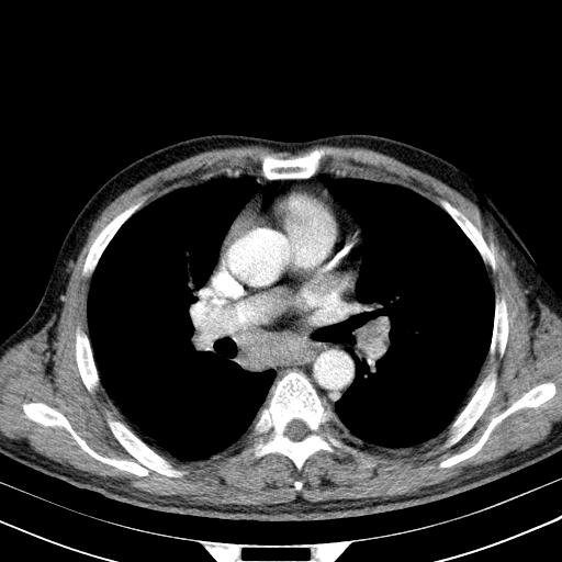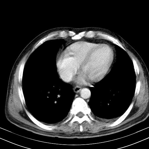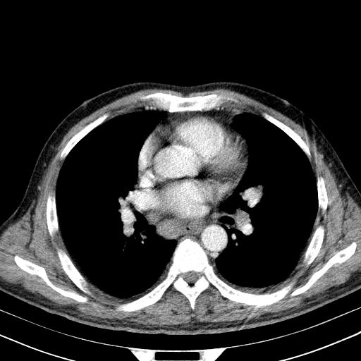 先行ct平扫,纵膈内多发软组织影,ct值约为36hu,以下为增强扫描和腹部平扫。