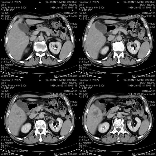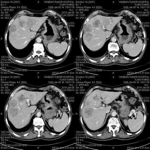 标题: CT24024:男,74岁。体检超声发现肝内多发占位性病变四天。