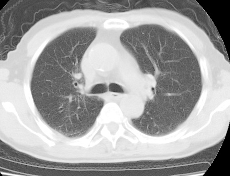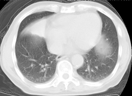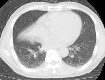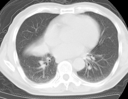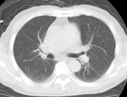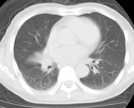 CT24032:男65岁,咳嗽,吸烟20余年,无发热,咳痰