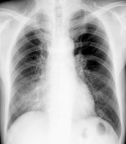1右肺门旁类圆形肿块影,右肺中叶不张,建议纤支镜检查