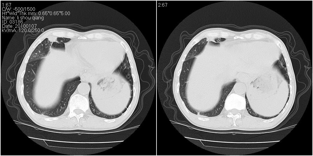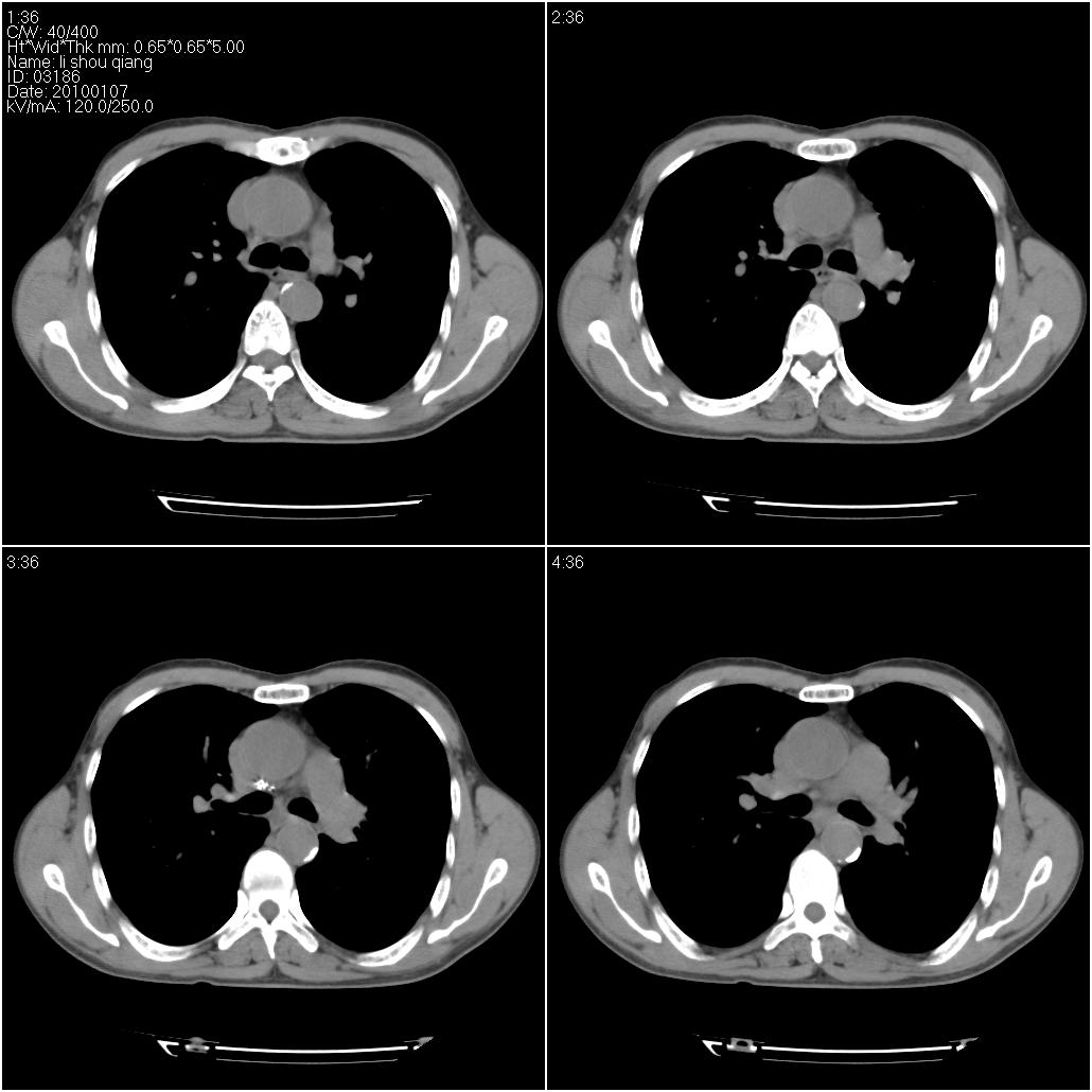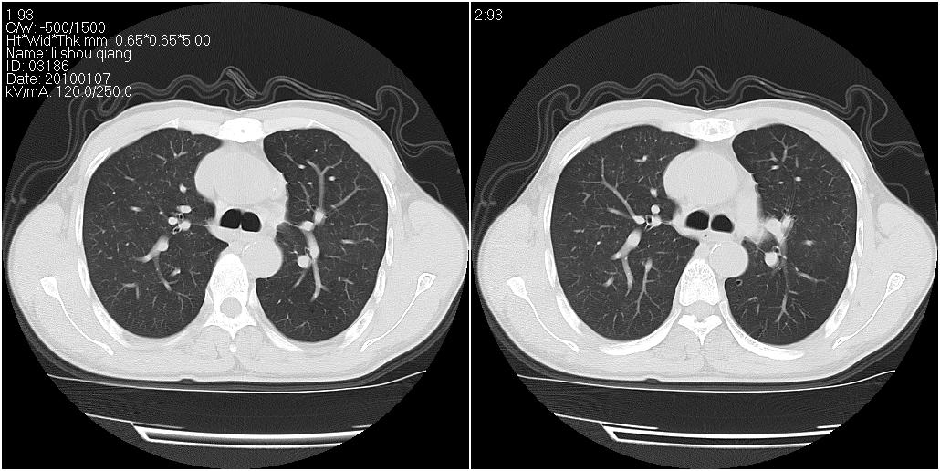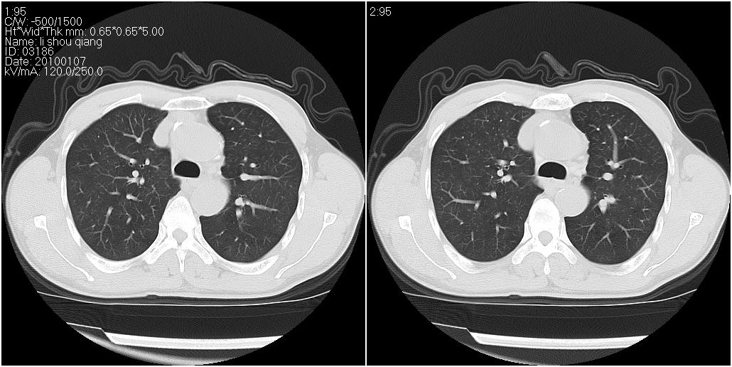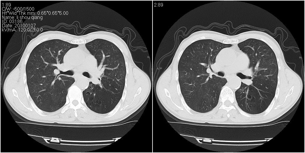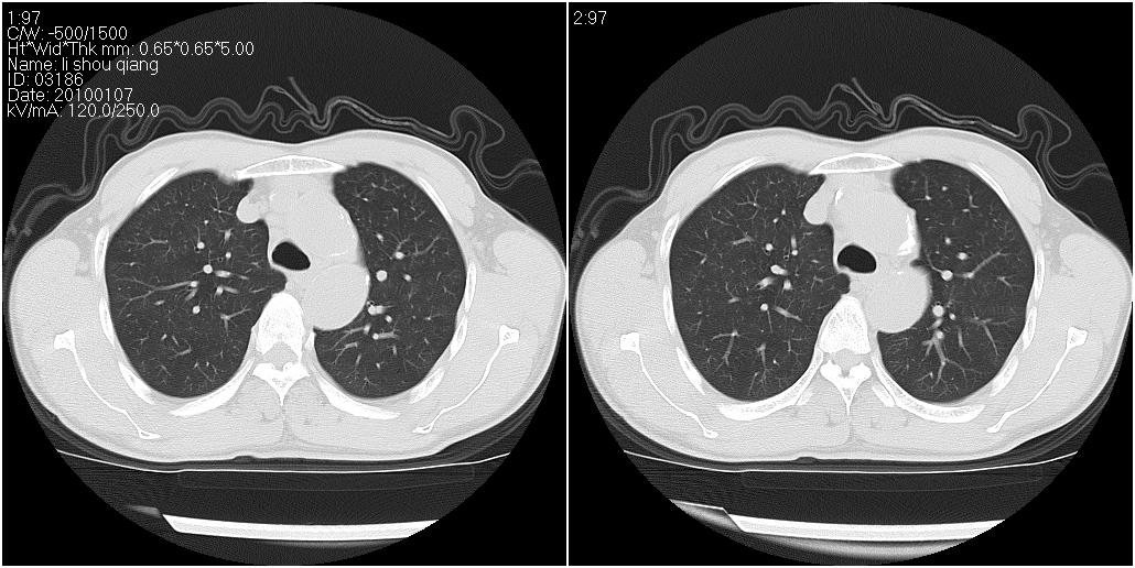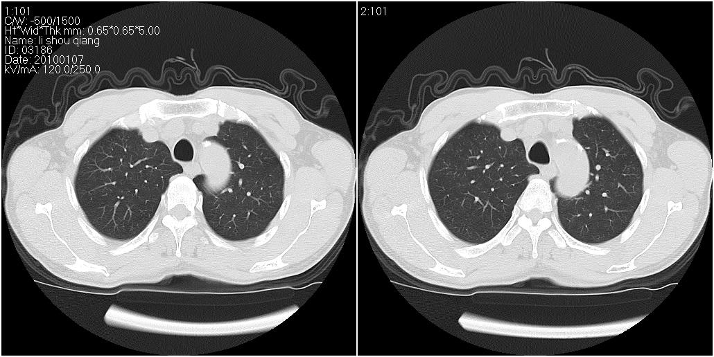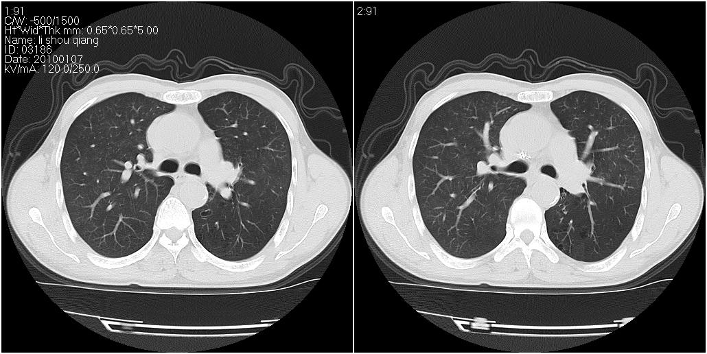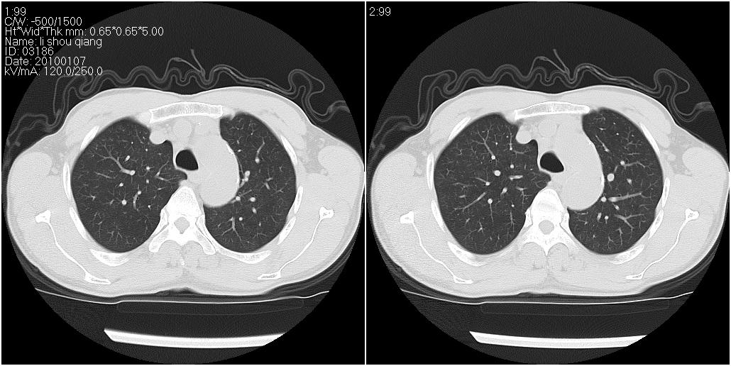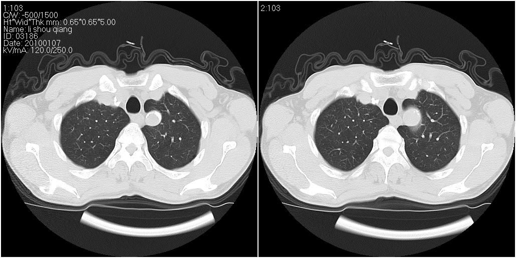 CT24038:男性,58岁。主因咳嗽带血性CT检查。