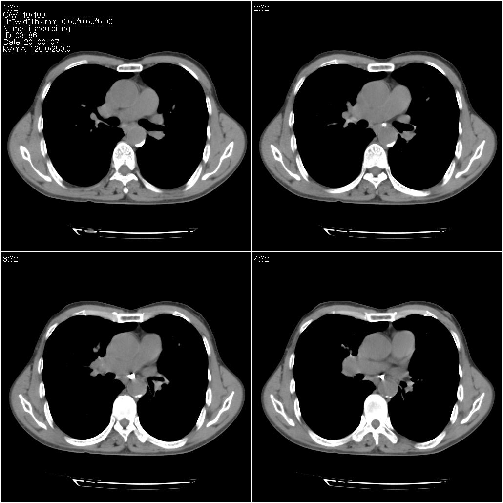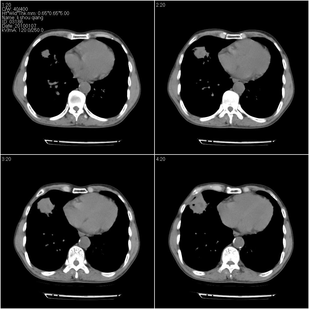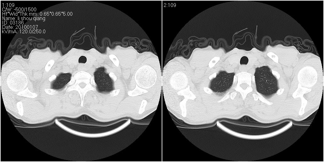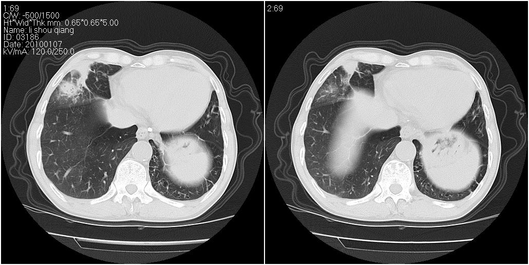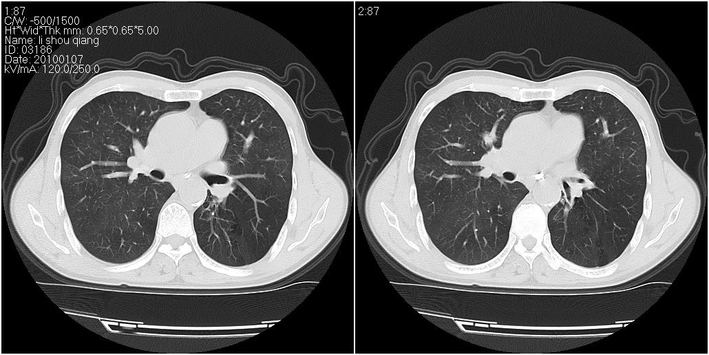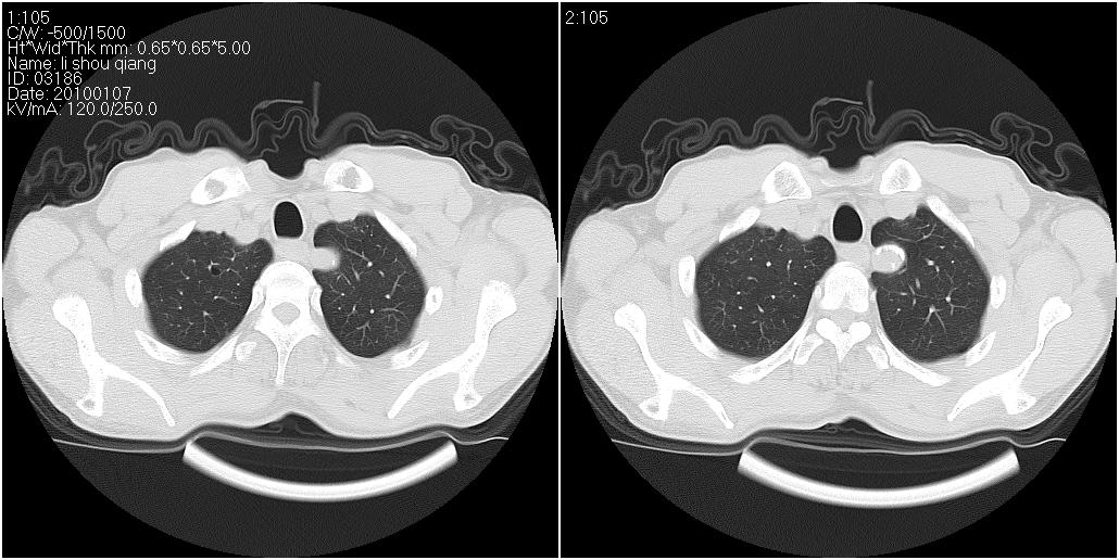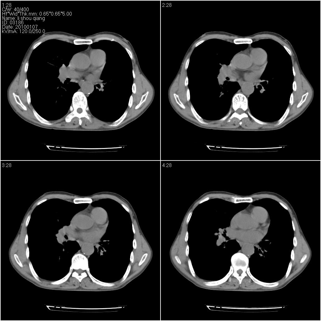CT24038:男性,58岁。主因咳嗽带血性CT检查。