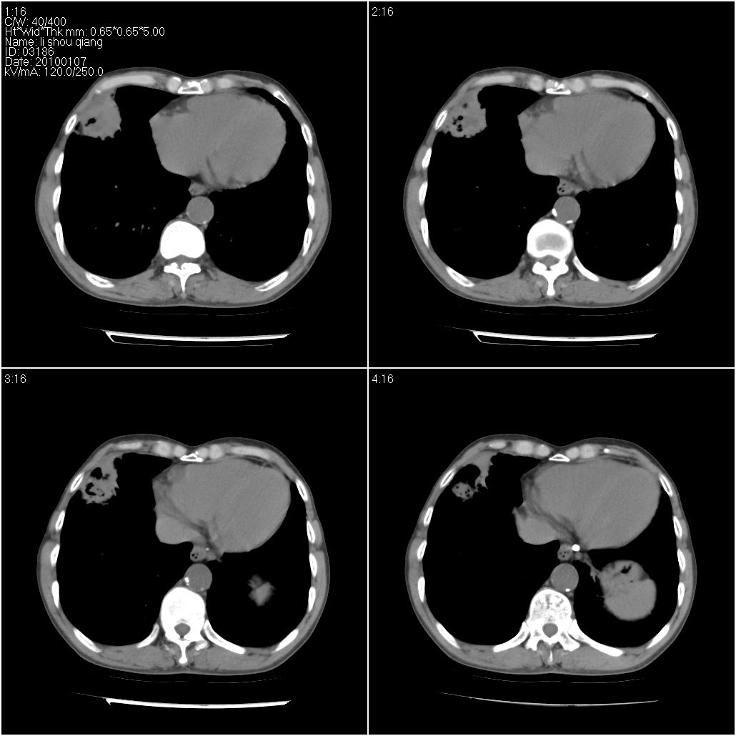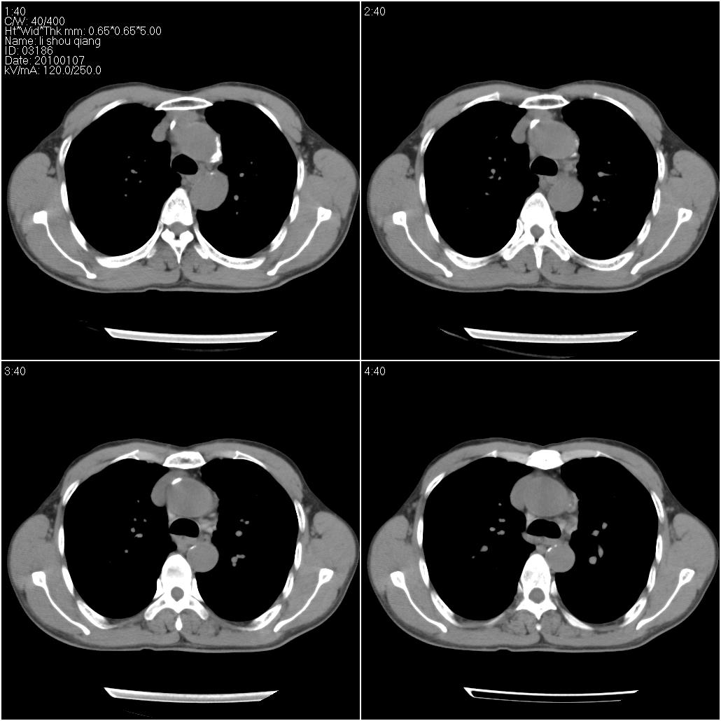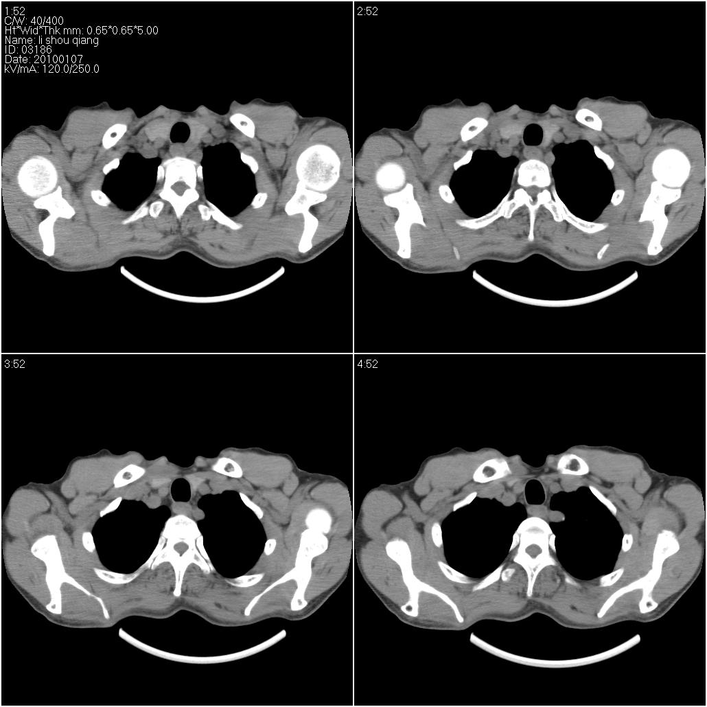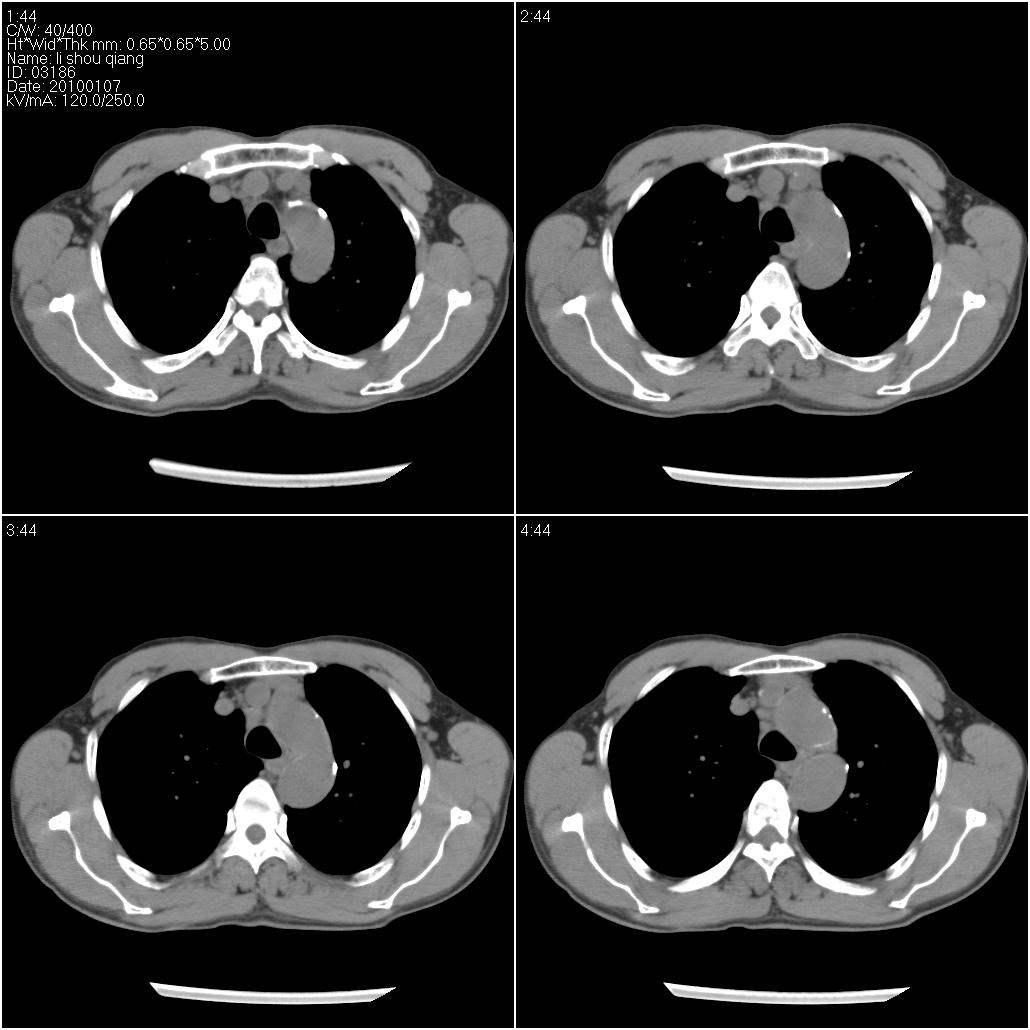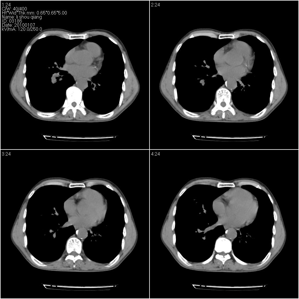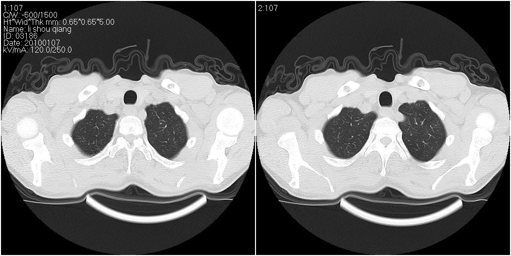 CT24038:男性,58岁。主因咳嗽带血性CT检查。
