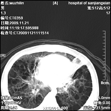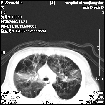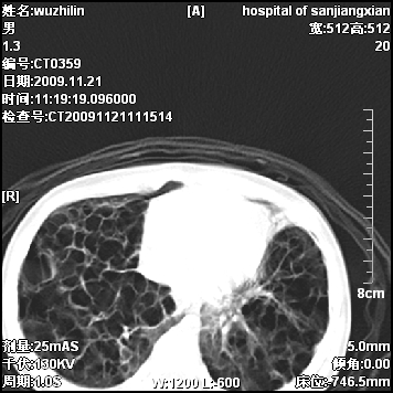 病因:编辑本段本病病因不明,多认为与遗传和免疫因素有关,曾有人考虑可能与病毒和细菌感染、吸入粉尘和气体以及药物可能为诱发因素。现多认为属免疫异常,可能是一种免疫复合物疾病有人认为属结缔组织病和自身免疫性疾患,但均未能证实。本病又与遗传因素有关,因有些病例有明显家族史,可发生于孪生儿 发病机制: 病理特征为弥漫性肺泡炎和肺间质纤维化。典型的组织学改变为间质弥漫性纤维组织和胶原组织增生及排列紊乱肺泡结构破坏,融合成囊,囊壁由纤维组织和增生的ⅱ型肺泡上皮细胞组成。电镜下见ⅰ型肺泡细胞消失,ⅱ型细胞增多并增生,肺泡毛细血管膜增厚,肺泡壁和间质内可见免疫复合物和补体沉积,细支气管平滑肌增生,肺小动脉壁增厚。肺泡间隔有淋巴细胞、浆细胞、单核细胞、组织细胞和少数中性粒细胞和嗜酸性粒细胞浸润,肺泡腔有细胞性和纤维素性渗出物等肺泡炎表现。 ; 实验室检查:编辑本段1.一般检查 30%~50%病人可有类风湿因子和抗核抗体阳性,部分病人血沉增快可有高丙种球蛋白血症,冷球蛋白阳性。可见嗜酸细胞增多。2.血气分析 早期为低氧血症不伴高碳酸血症,但晚期可发生高碳酸血症。低氧血症与用力或运动相关,即用力或运动时低氧血症加重3.肺功能测定 表现为限制性通气障碍。所有肺容量值成比例地明显下降,如肺活量、功能残气量、肺总量值明显下降;肺顺应性和弥散功能亦明显降低,后者出现早、检出率高。4.支气管肺泡灌洗液 支气管肺泡灌洗液中可见到较多的炎症细胞,肥大细胞相对较多鶒5.肺活检 可确诊开胸或经胸腔镜肺活检被认为是诊断本病的“金标准”。要取得肺部有代表性的标本至少在两个不同的部位活检,应避免在肺尖和中叶,多在同侧的上叶和下叶开胸或经电视胸腔镜肺活检能更精确区分炎症和纤维化的范围对确定肺泡炎症的活动程度和末期肺纤维化有一定的诊断价值。组织病理表现为:肉眼观早期可正常但可见肺泡壁、肺泡及支气管周围有淋巴细胞、浆细胞浸润,偶有嗜酸性粒细胞浸润;晚期则呈弥漫性蜂窝样改变。低倍镜下为不均匀分布的正常肺组织、间质炎症、纤维化和蜂窝样改变,以周边肺实质最严重健康搜索。间质炎症是片状分布健康搜索,包括肺泡间隔淋巴细胞和浆细胞浸润,伴有肺泡ⅱ型细胞增生。 其它辅助检查:编辑本段1.x线检查 肺x线变化往往与病理变化一致,显示广泛的颗粒或网点状阴影或小结节影(图1)。后期示中下肺野弥漫网点状阴影,随纤维化越趋加重鶒出现粗索条状阴影。当间质纤维组织收缩,肺泡及细支气管扩大形成蜂窝状肺有时可见气胸,纵隔及皮下气肿常有继发感染表现。2.心电图 可出现右心肥大鶒的征象3.肺功能减退 气道阻力并不升高,但有限制性通气障碍伴肺容量减少,肺活量减少,肺顺应性减退,肺弥散功能降低。4.ct 显示广泛网点状结构,混有小囊状影,肺纹理增多、延伸可见与胸膜平行的条状影和点状影,肺透亮度增强等。5.高分辨力ct(hrct) 显示微细结构改变:(1)毛玻璃样高密度影其中可见细小支气管扩张形成鶒的多囊状改变,为间质肺纤维化的早期改变。(2)胸膜下线表现为胸膜下弧线影宽3mm,见于肺纤维化初期。(3)小叶间隔不规则增厚,与肺及胸膜的交界面不规则,小叶结构变形。(4)弥漫或片状分布的蜂窝状低密度影区多位于胸膜下区(直径1cm)。 >冷球蛋白 >功能残气量 >嗜酸性粒细胞 >弥散功能 >抗核抗体 >浆细胞 >淋巴细胞 >类风湿因子 >肺总量 >肺活量 >肺顺应性 >血气分析 >血沉 临床表现:编辑本段本症可发生于少年儿童,最小可见于4个月婴儿。起病多隐匿。发病于6个月以前者病程多为急性6个月~2岁可为急性或慢性,发生于2岁以后者多为慢性。临床症状以干咳较为常见鶒,可伴血痰,气短,进行性呼吸困难,活动后加重及发绀为主,一般不发热,可有体重下降,疲乏无力食欲减退及肺心病。最后发展为呼吸衰竭及右心衰竭。大多数病人死于呼吸道感染并发的呼吸衰竭。体检见患儿发育不良肺叩诊清,在肺底部可闻细小捻发音,称velcho啰音,有明显杵状指(趾)。实验室检查心电图肺功能和肺x线检查可助诊断 并发症: 肺纤维化气胸,纵隔及皮下气肿,常有继发感染,最终发展为呼吸衰竭及右心衰竭。大多数病人死于呼吸道感染并发的呼吸衰竭鶒。 诊断:编辑本段诊断主要根据临床症状,肺x线改变及肺功能测定。确诊有赖于肺活检,支气管肺灌洗液检查可见中性粒细胞,有巨噬细胞增多及胶原酶增加。1.病史 发病年龄可早自幼婴,迟至成人鶒,国外报道新生儿期也可发病呈家族性发病时女孩多见。2.临床表现症状 典型者表现为无痰干咳和隐匿性发作的呼吸困难,病初在用力运动时发生,然后呈进行性发展,至休息时也出现呼吸困难;随病情进展出现低氧血症的一系列症状,如食欲不振、生长不良、多关节痛、乏力及特异性胸骨或胸骨下疼痛,也可并发咯血及自发性气胸3.体征 典型体征为呼吸浅快两肺底吸气末细湿啰音,杵状指(趾)(早期不典型可见甲床下毛细血管充血、扩张,甲床呈明显红色),中央性青紫。病情后期可出现水肿、肝大、p2亢进、静脉淤张等体征 鉴别诊断:编辑本段需与许多肺部疾患可致肺间质炎症或纤维化者鉴别,并与在x片上表现为网状或结节状阴影者相区别。首先应与粟粒性结核及浸润性肺结核区别,其次应与dip和淋巴细胞间质性