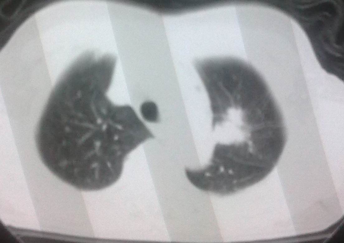 以下是引用科室第一人在2010-1-16 18:56:00的发言:[br]左上叶前段块状影,密度欠均匀,边缘呈分叶状,肺窗见有毛刺考虑为肿瘤[br]图像不完整,不知纵膈淋巴结是否肿大