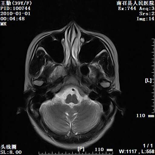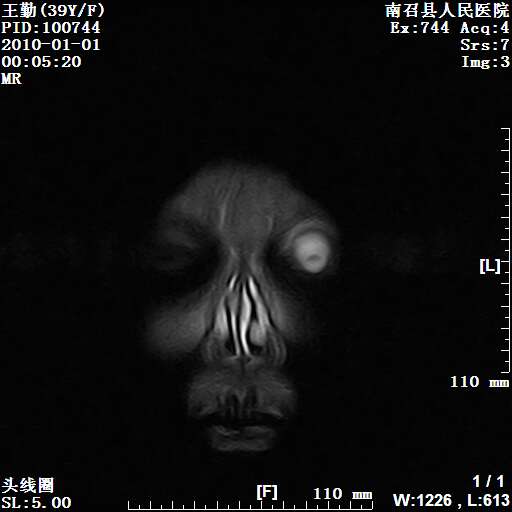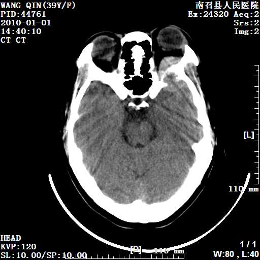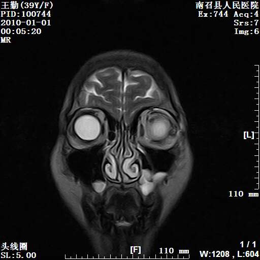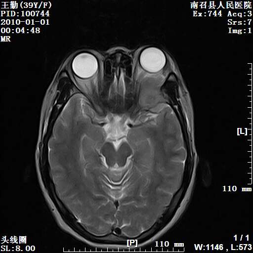 以下是引用随光逐影在2010-1-22 9:03:00的发言:[br]考虑左侧中颅窝(蝶骨翼区)脑膜瘤侵犯蝶骨翼并突入左侧眼眶。