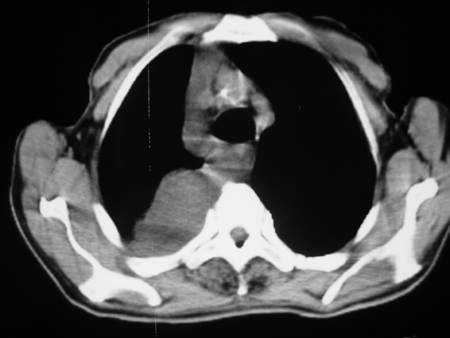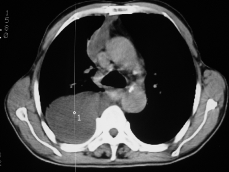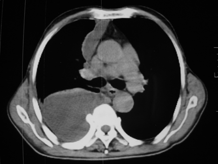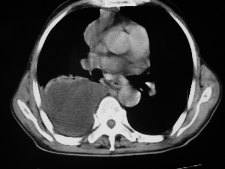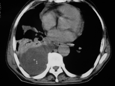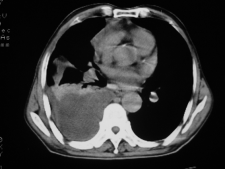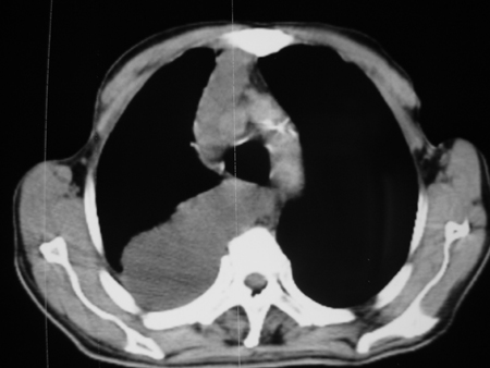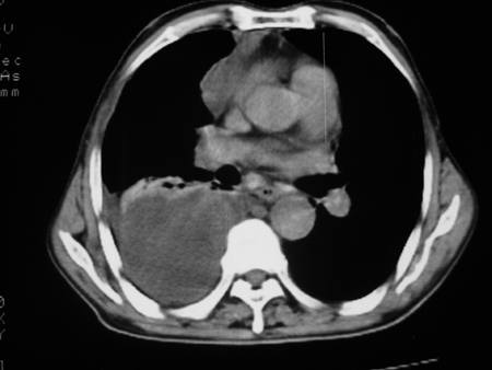 考虑右肺门占位并下叶不张 右胸包裹积液