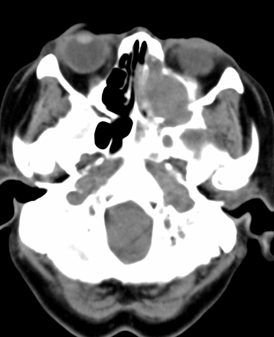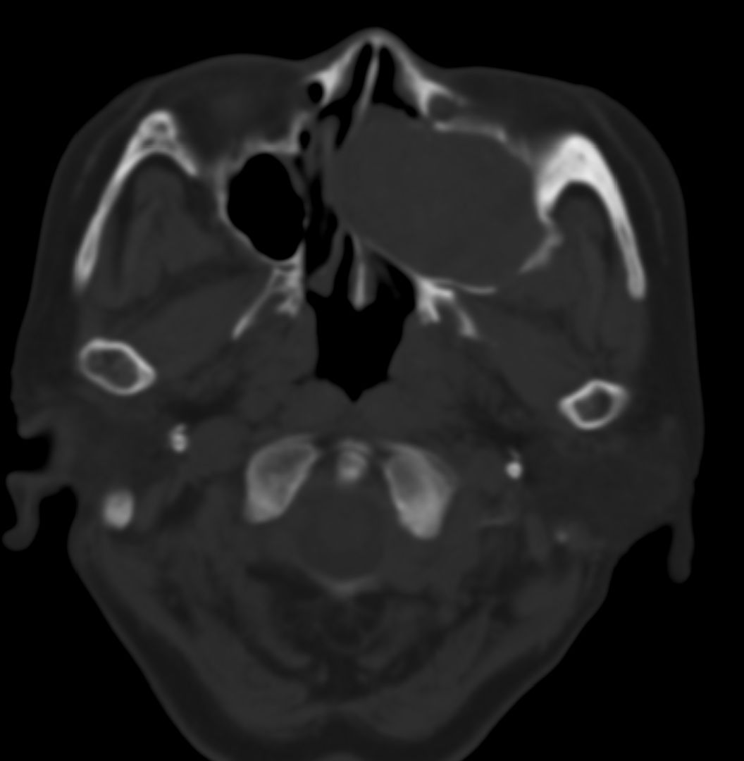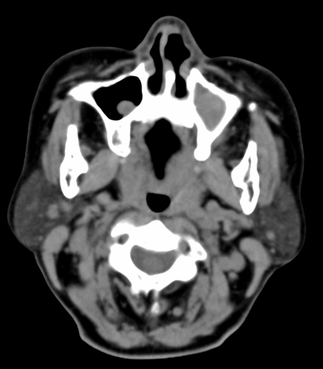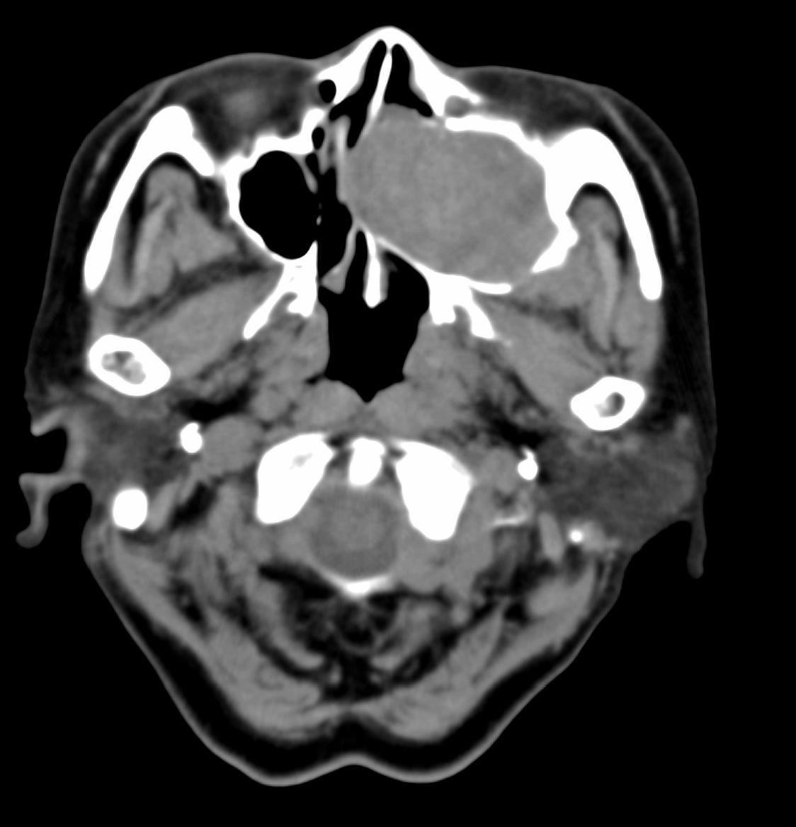 以下是引用随光逐影在2010-3-15 16:19:00的发言:[br]1)考虑左侧上颌窦内翻乳突状瘤突入左侧鼻腔。2)副鼻窦炎,右侧上颌窦黏膜下囊肿。