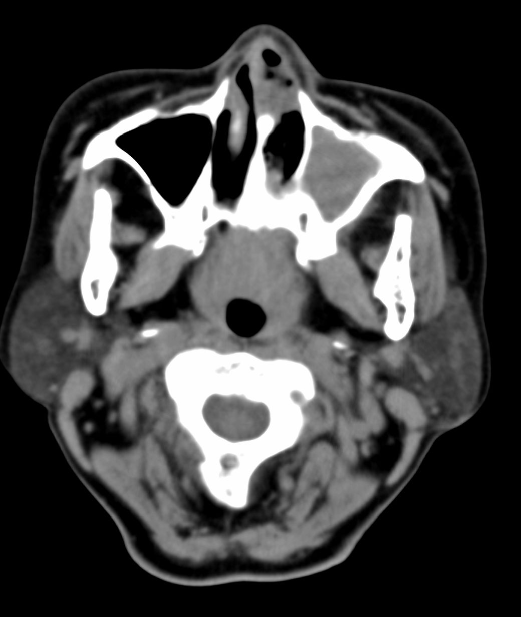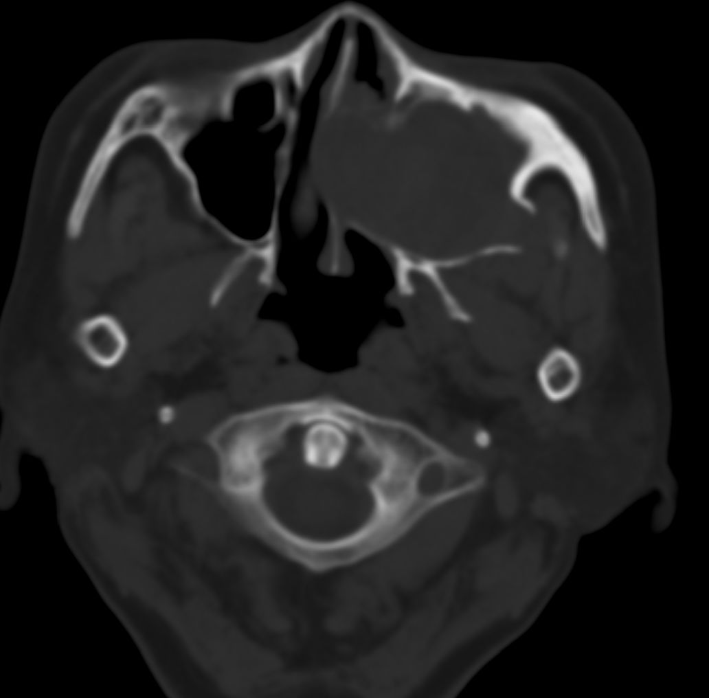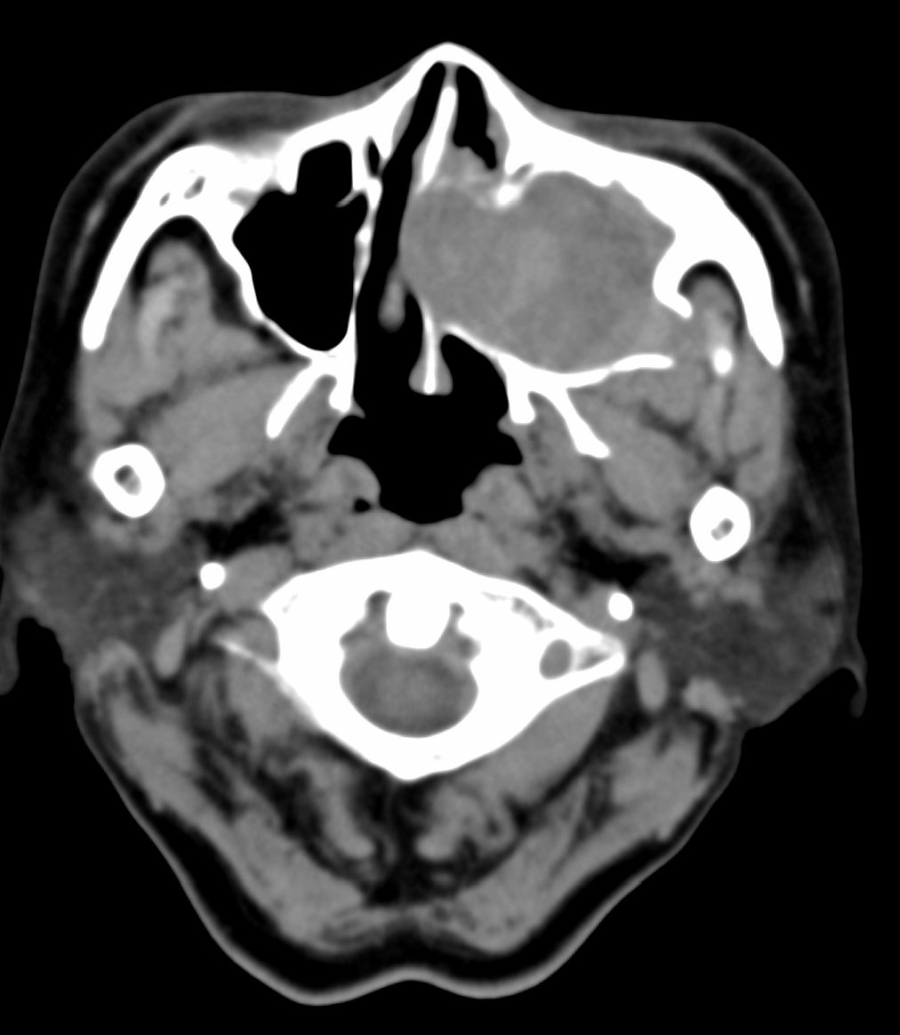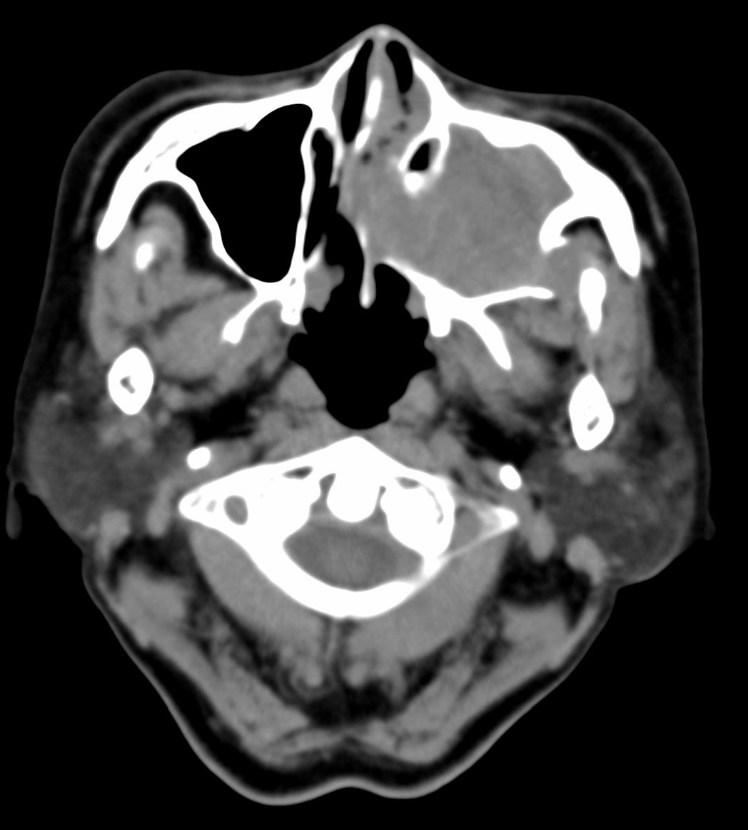 以下是引用随光逐影在2010-3-15 16:19:00的发言:[br]1)考虑左侧上颌窦内翻乳突状瘤突入左侧鼻腔。2)副鼻窦炎,右侧上颌窦黏膜下囊肿。