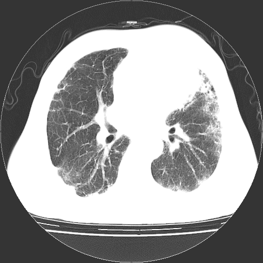 CT25149:男,69岁,反复咳嗽、咳痰五年余,呼吸困难三天。