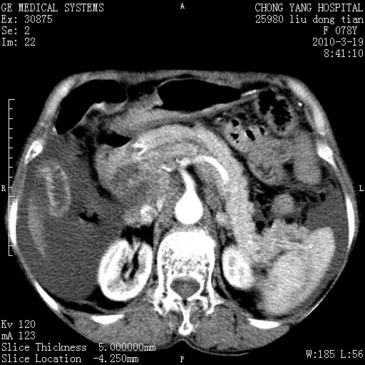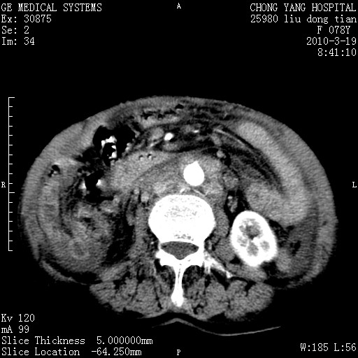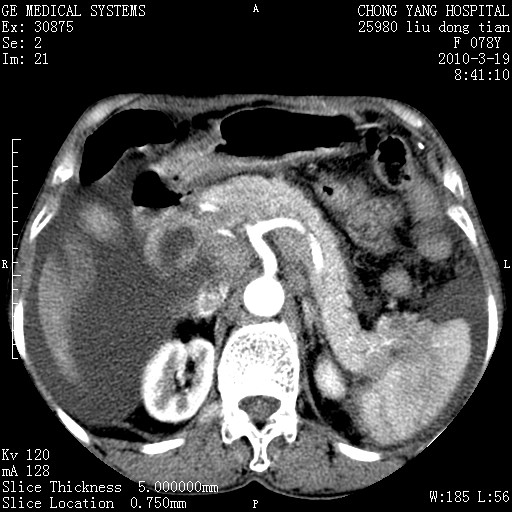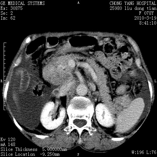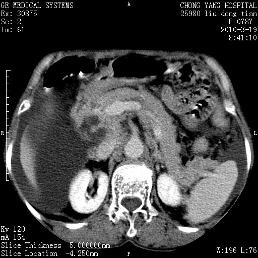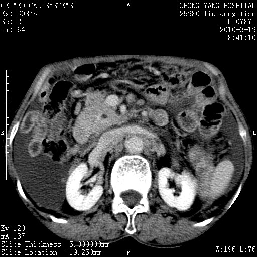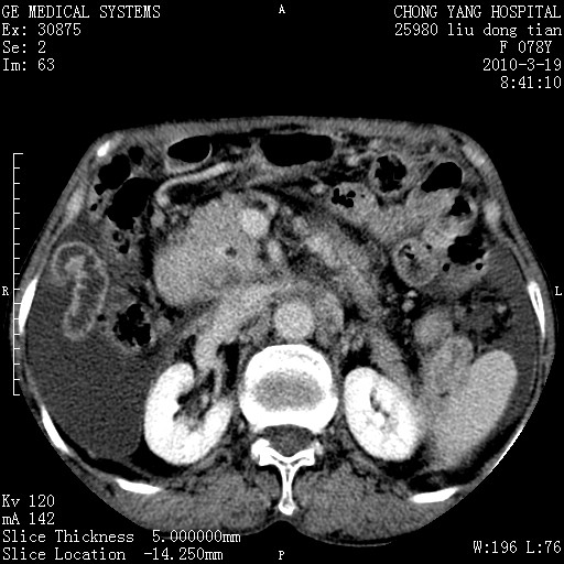 以下是引用zjzjr在2010-3-19 17:22:00的发言:[br]胆囊壁增厚并明显强化,胆囊癌伴多发转移瘤可能性大,淋巴瘤不除外,右肾囊肿,胸腹水.