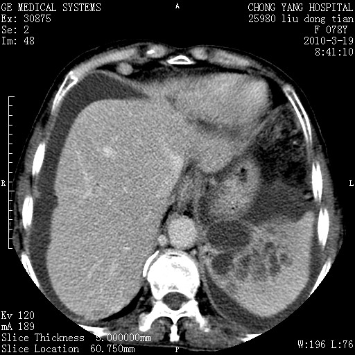 标题: CT25199:F 78Y 腹胀半年 消瘦乏力