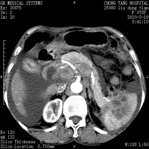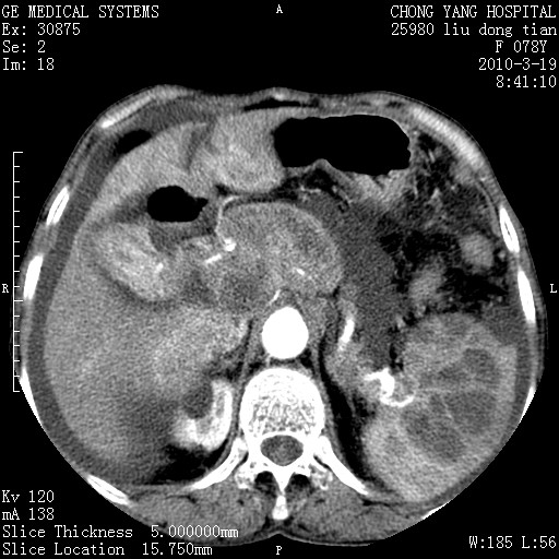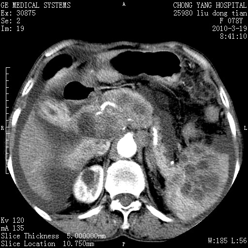 胰头有肿块形成,胰头ca伴肝脾、腹膜腹膜后转移