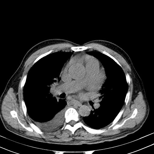 以下是引用zxl51642在2010-3-21 17:06:00的发言:[br]右下中心型肺癌并阻塞性肺炎/不张,纵膈淋巴结肿大,右侧大量胸腔积液,左侧少量胸腔积液,少量腹水。建议纤维支气管镜进一步检查。