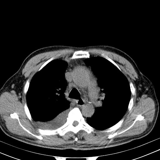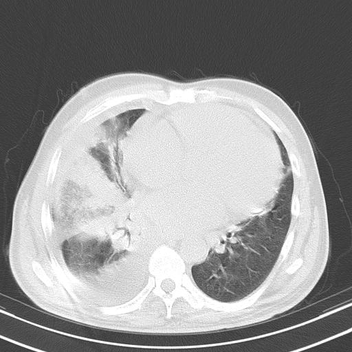 以下是引用zjzjr在2010-3-21 17:39:00的发言:[br]右下中心型肺癌并阻塞性肺炎/不张,纵膈淋巴结肿大,右侧大量胸腔积液,左侧少量胸腔积液