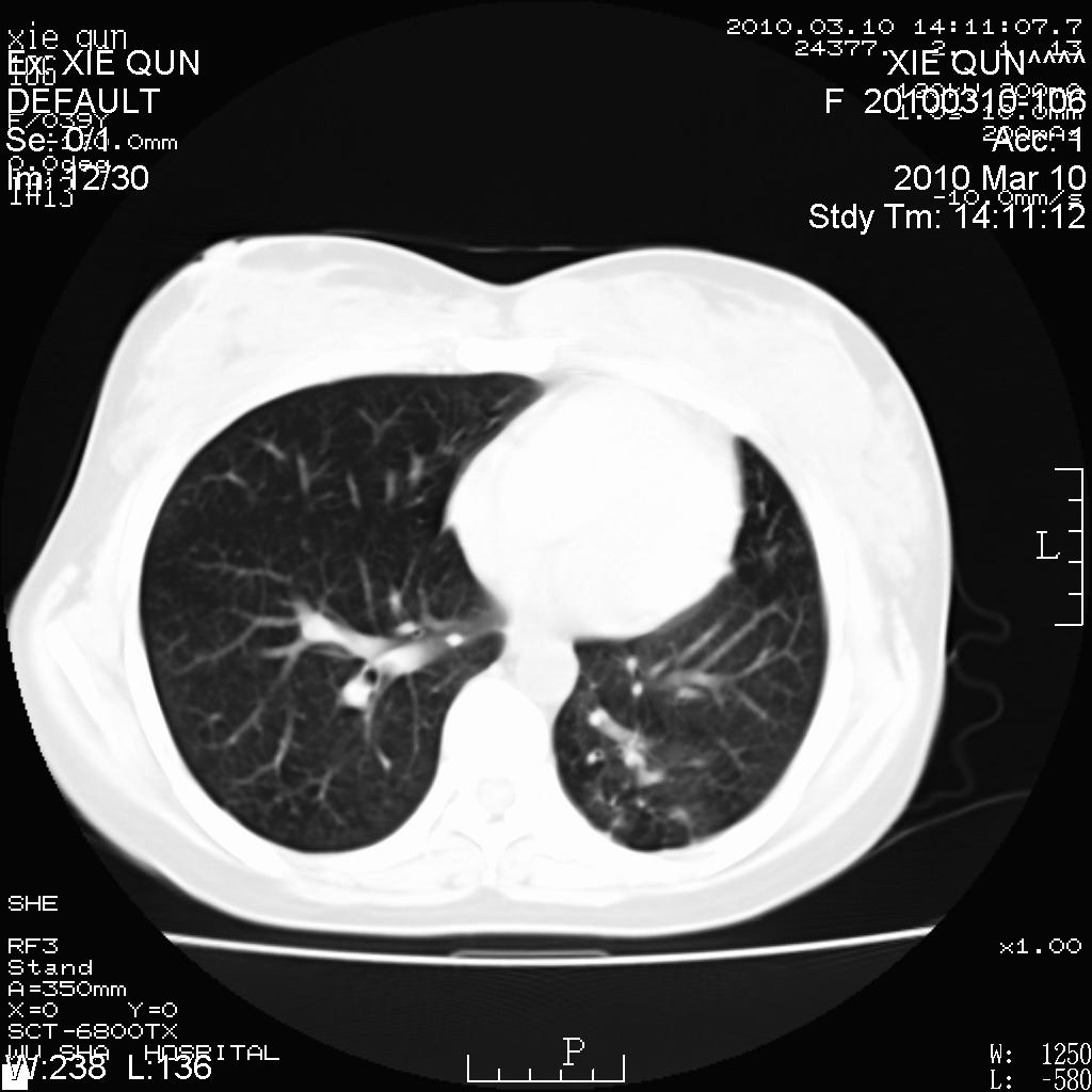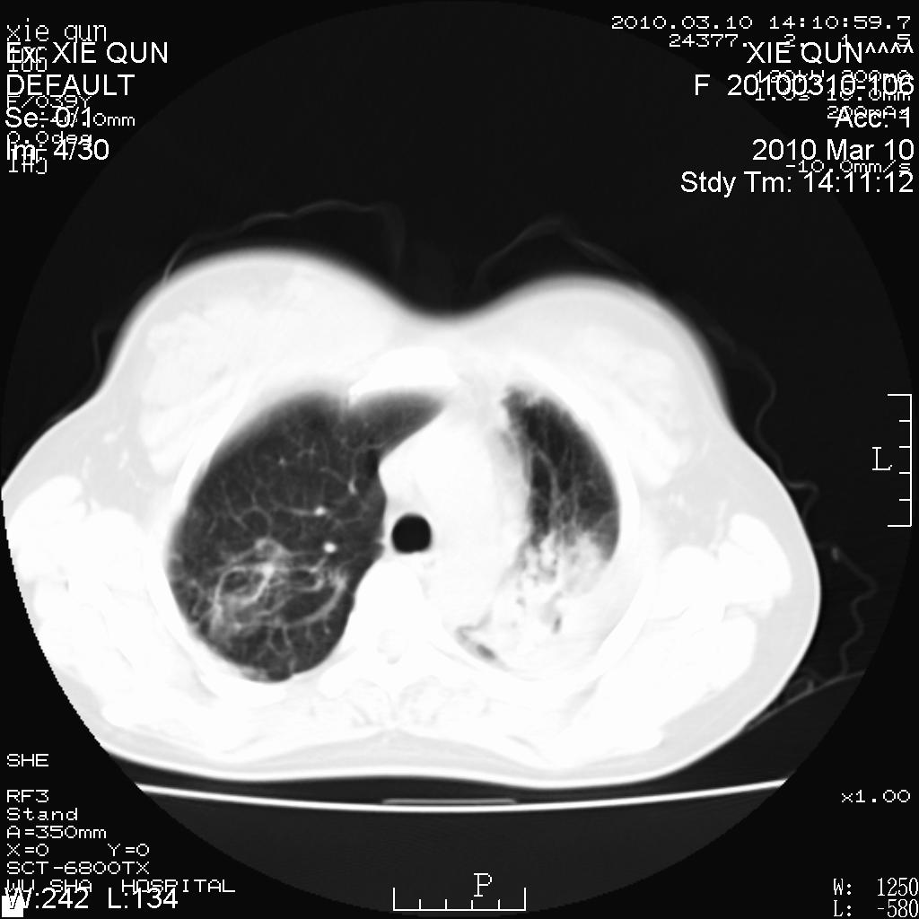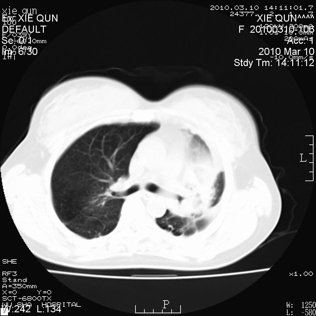 以下是引用随光逐影在2010-3-24 19:19:00的发言:[br]两肺继发性结核并左上肺上叶空洞形成。
