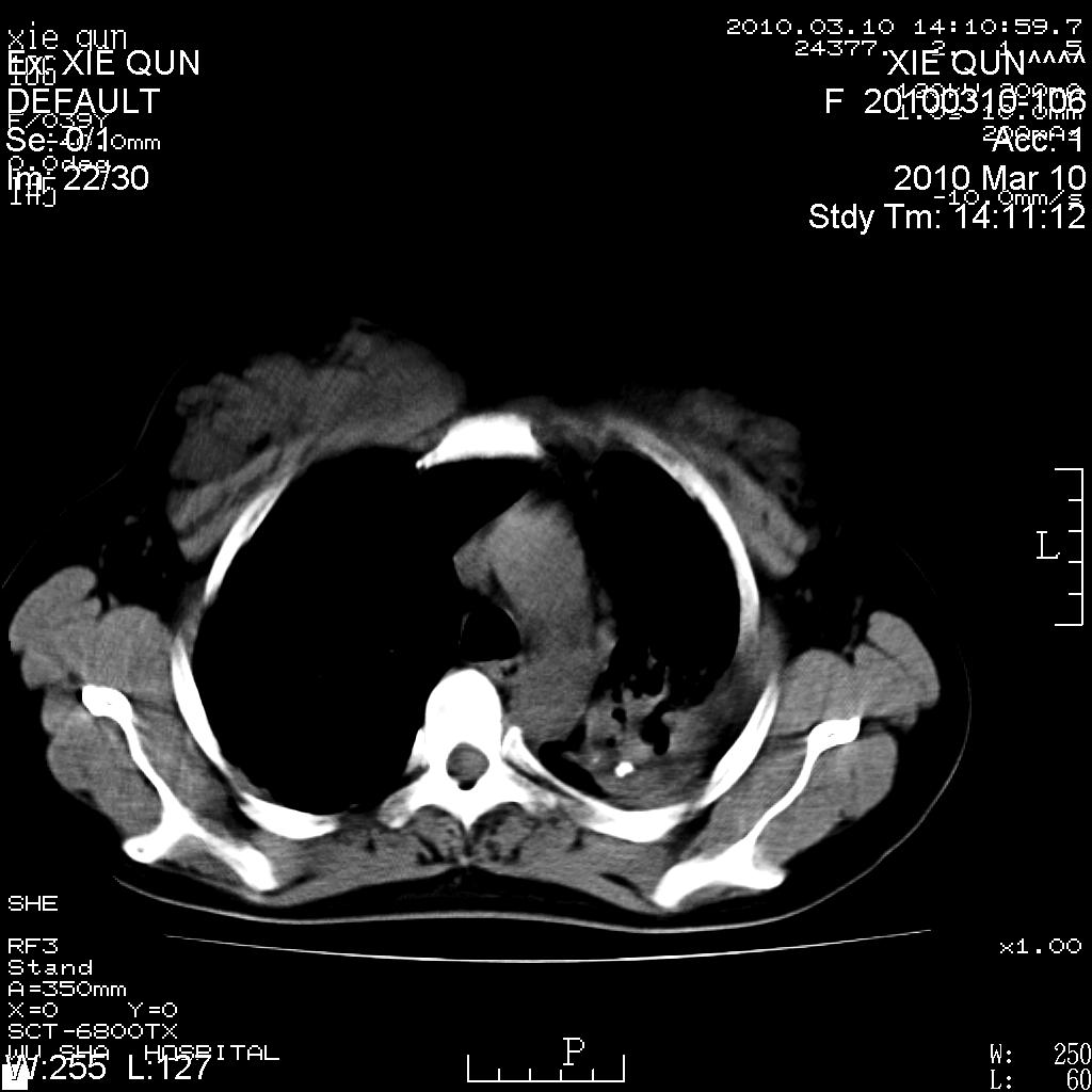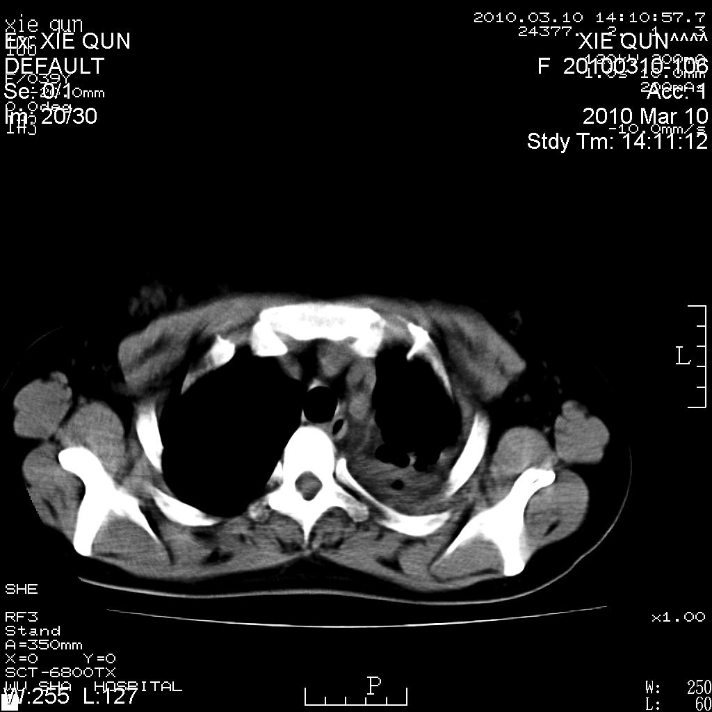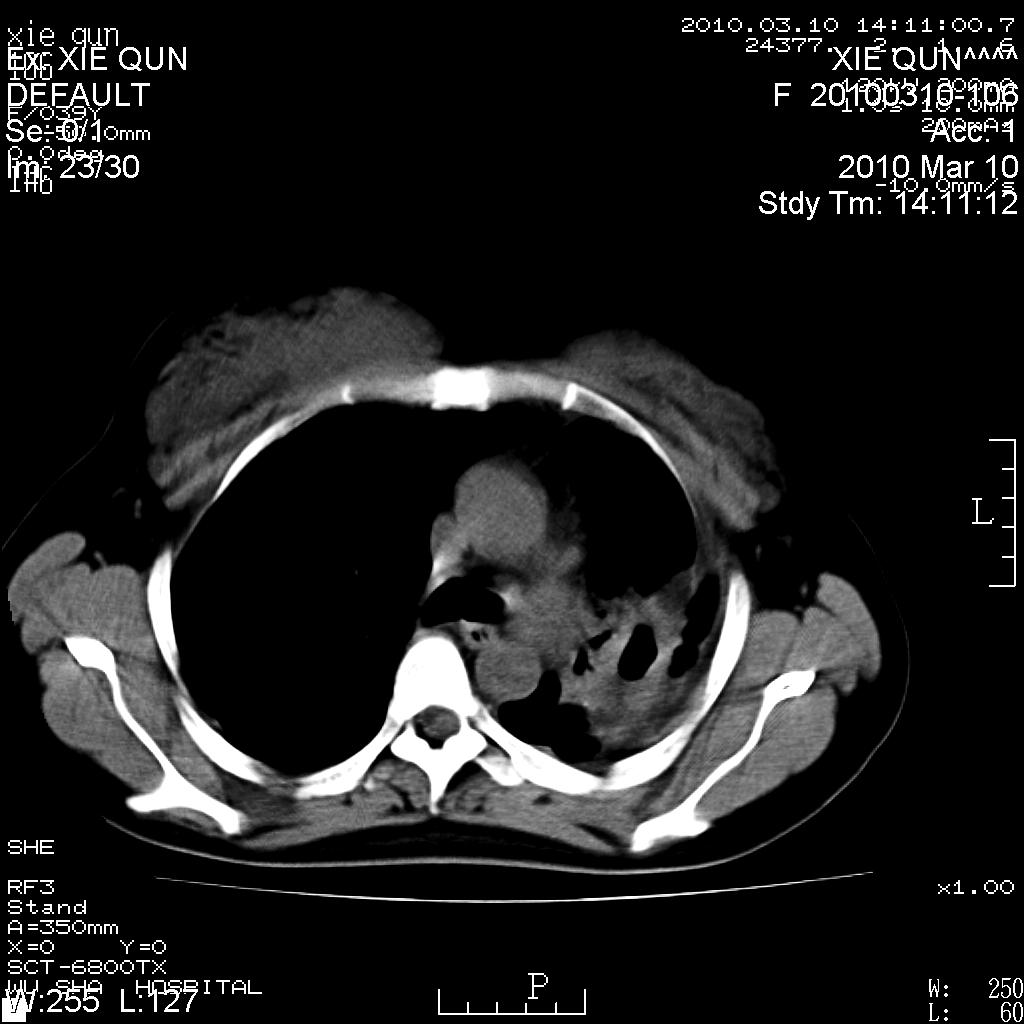 以下是引用随光逐影在2010-3-24 19:19:00的发言:[br]两肺继发性结核并左上肺上叶空洞形成。