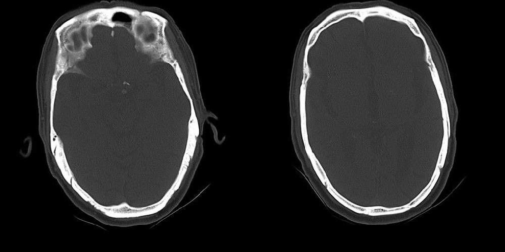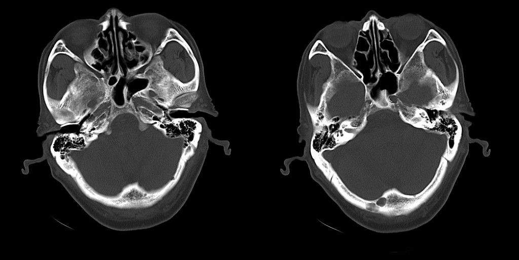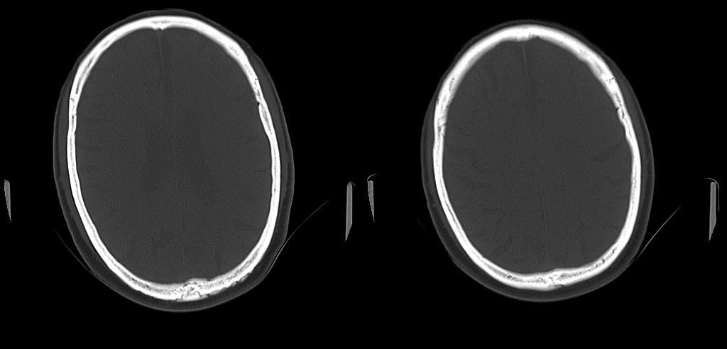 该患者因头疼来诊,发现枕骨不规则缺损。