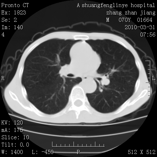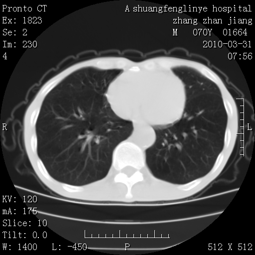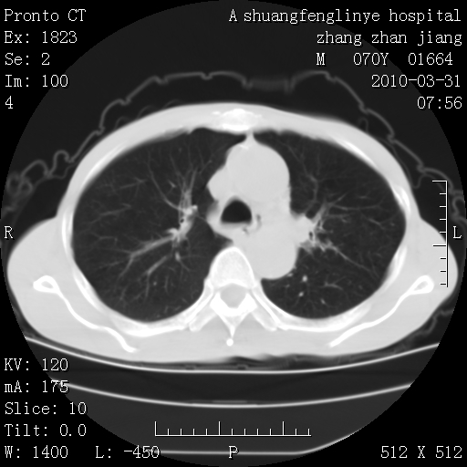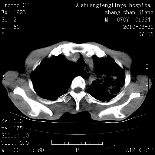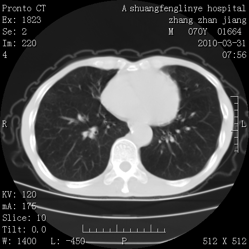 1)两肺上叶继发性肺结核并左肺上叶空洞形成。2)冠状动脉及主动脉钙化。