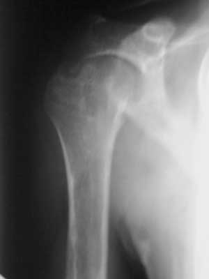 以下是引用zsl6918在2010-4-9 5:27:00的发言:[br]图像欠清晰,位置不标准,影响了诊断。仅能提示肱骨头及关节盂形态不自然,考虑与发育有关。