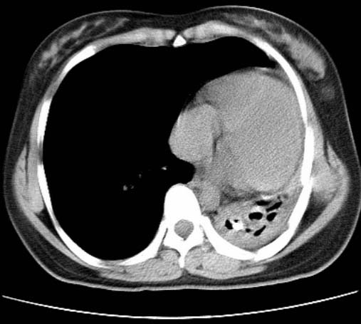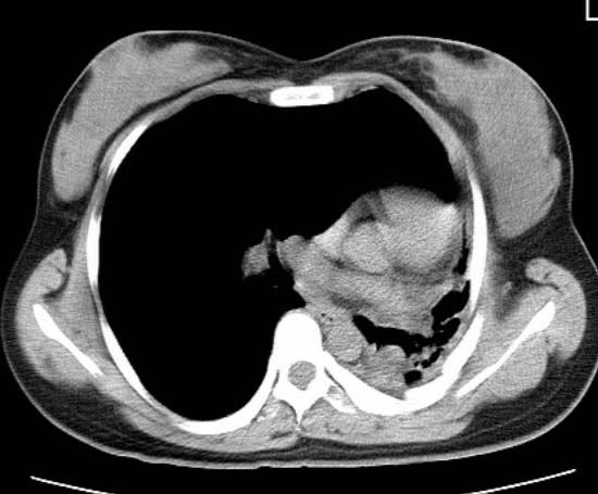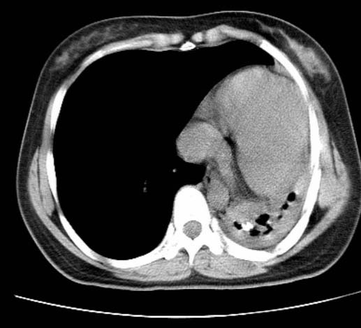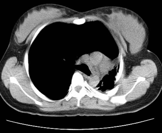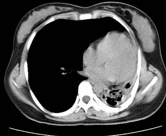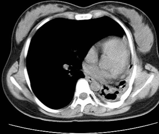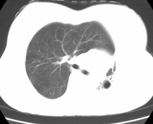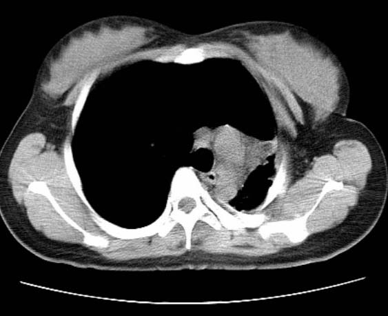 以前体检正常只能考虑左肺结核并肺不张、支气管扩张。2)纵隔疝。