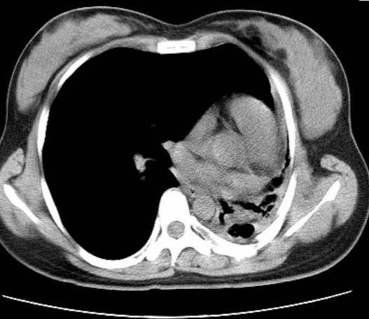 1)考虑左肺结核并肺不张、支气管扩张。2)纵隔疝。