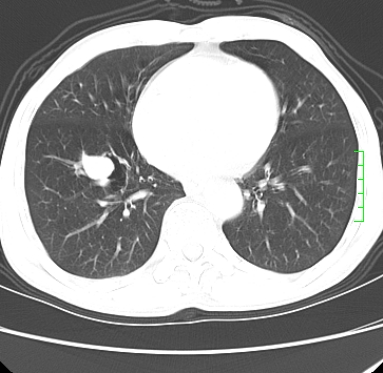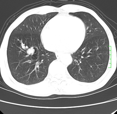 指套征,强化明显,近侧肺组织局限性肺气肿,考虑支气管类癌,慢支、肺气肿、双上陈旧性tb、冠脉钙化。