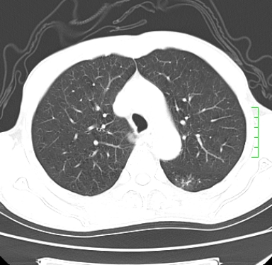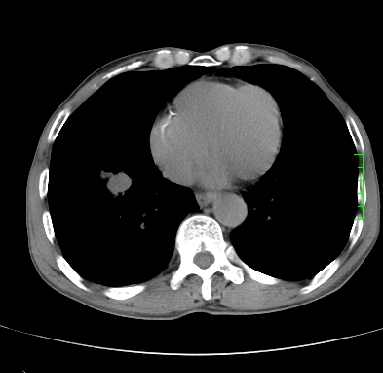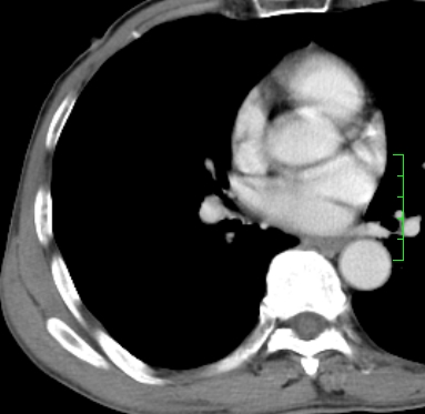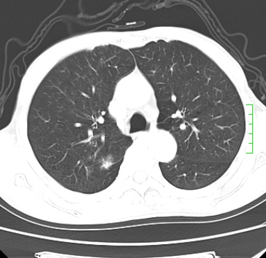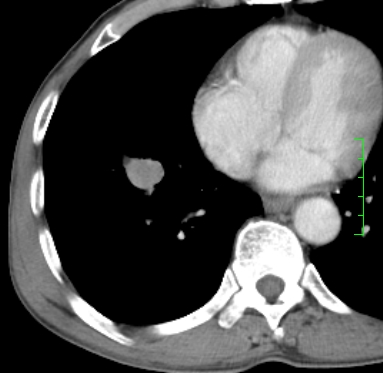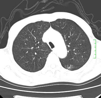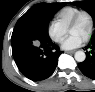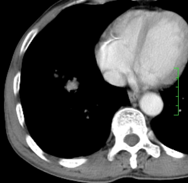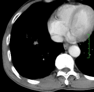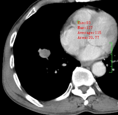 m,73y。膝关节疼痛伴双下肢水肿。入院常规胸片发现结节灶。增强为静脉期。