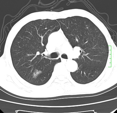 1)考虑右肺下叶周围型肺癌。2)右肺上叶及左肺感染性病变(结核可能)。3)肺气肿。4)冠状动脉钙化。