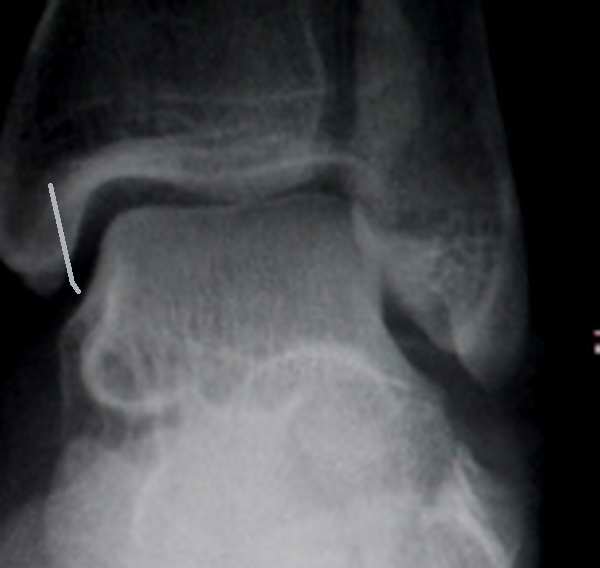 以下是引用zhanggenliang在2010-4-10 21:26:00的发言:[br]跟骨骨折,此片不能诊断外踝骨折,可以说可疑,距骨内侧支持楼主重叠影一说。可以ct检查,也可以过几天血肿吸收后复查