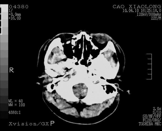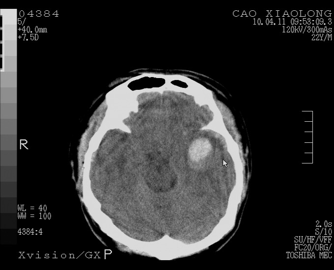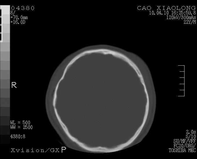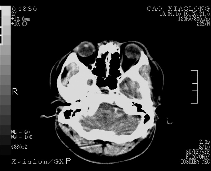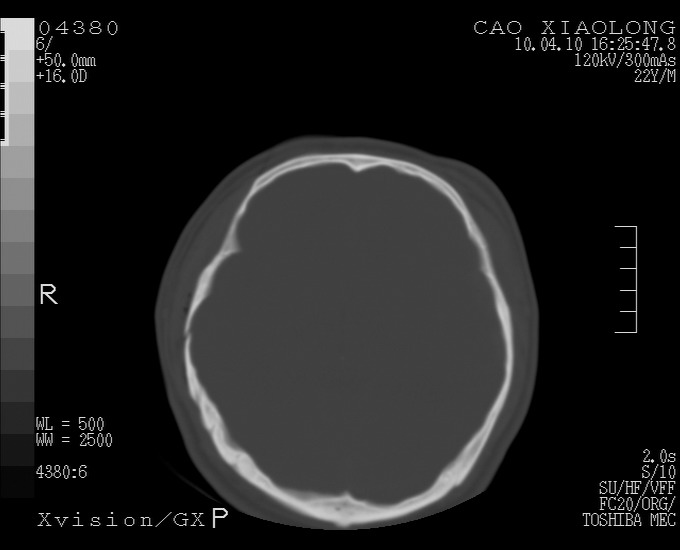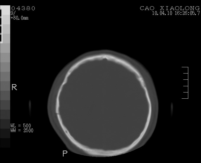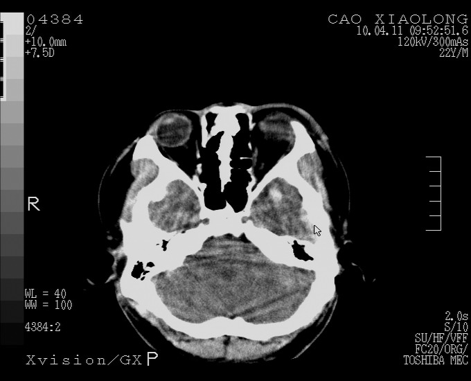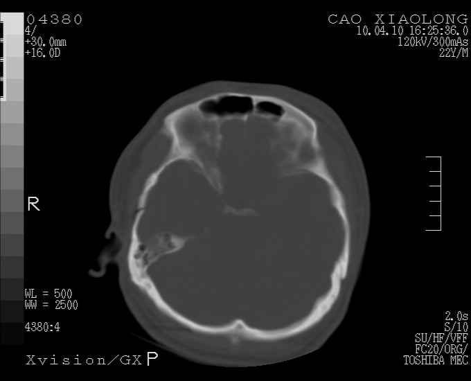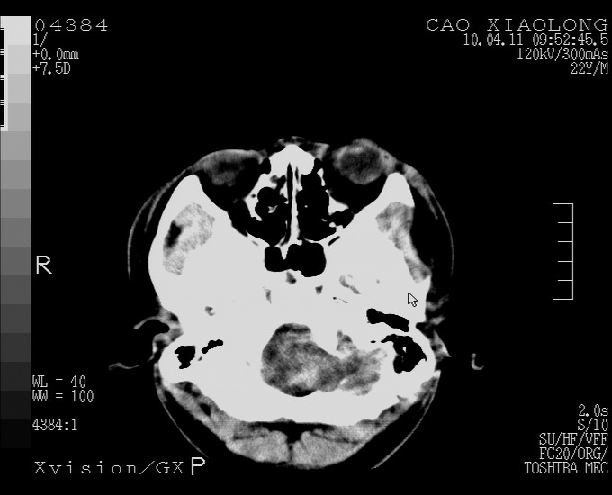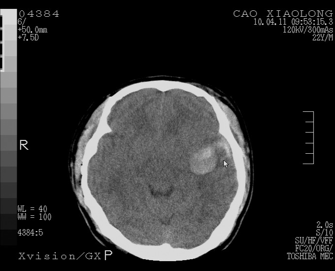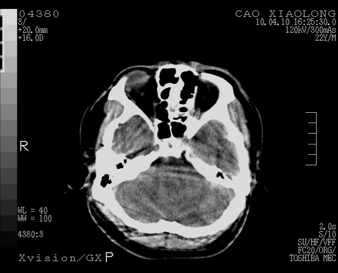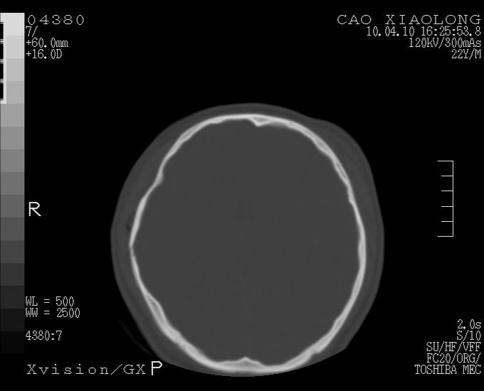 以下是引用随光逐影在2010-4-11 11:00:00的发言:[br]1)左侧额颞顶部硬膜下血肿。2)蛛网膜下腔出血。3)右侧颞顶部颅骨线形骨折。[br][br]20小时后复查:左侧额颞叶脑挫裂伤;左侧额颞顶部硬膜下血肿及蛛网膜下腔出血有吸收表现;右侧颞顶部颅骨线形骨折。[br]