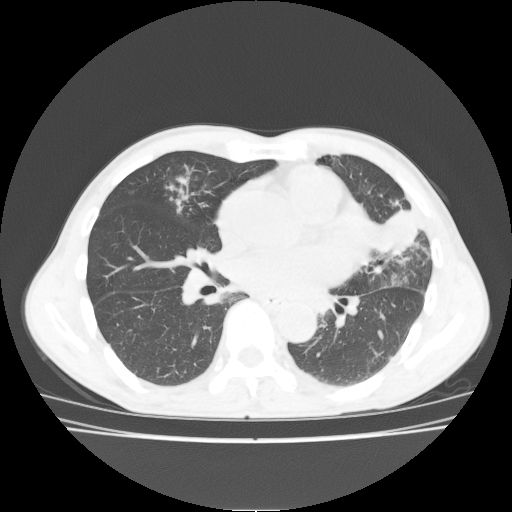 CT25795:感冒后反复咳嗽两月余,痰中带血半月余。X诊断“肺