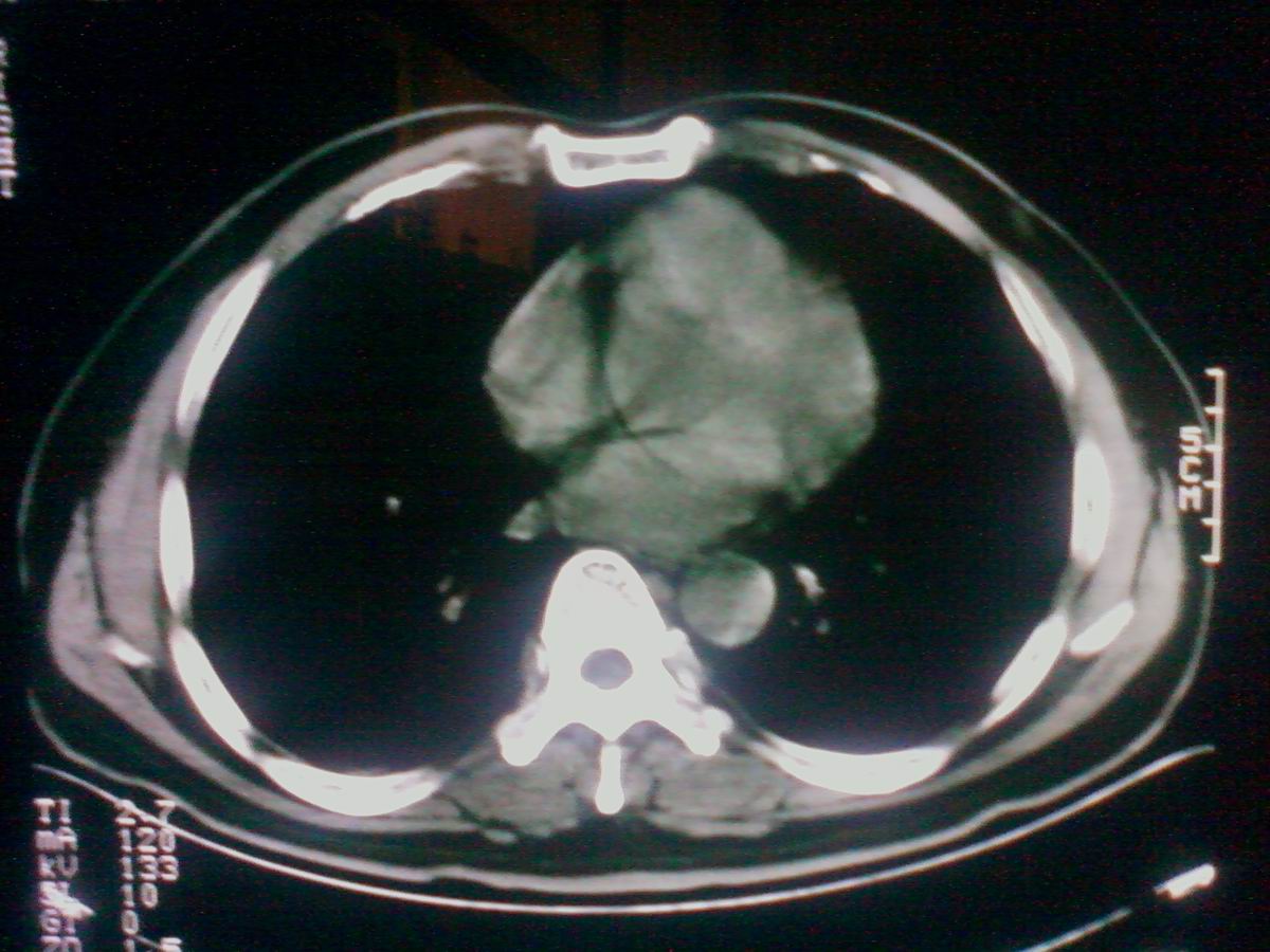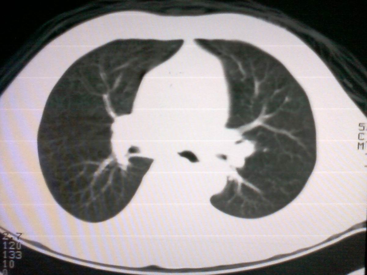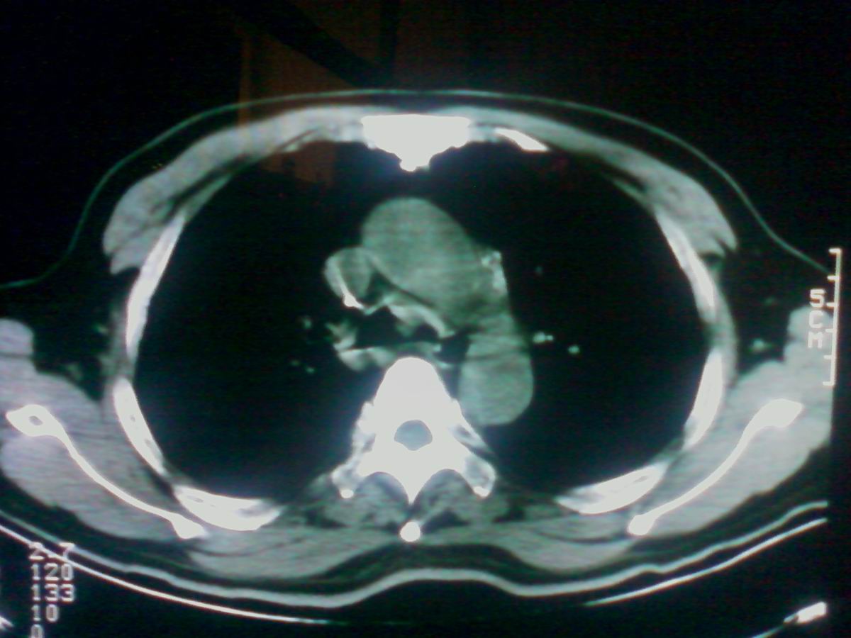 进修时见过一例类似的并例,不过肿块位置较高,在胸锁关节以上的气管内,如果不是扫描得高,几乎忽略掉。后来支气管镜检为鳞癌。