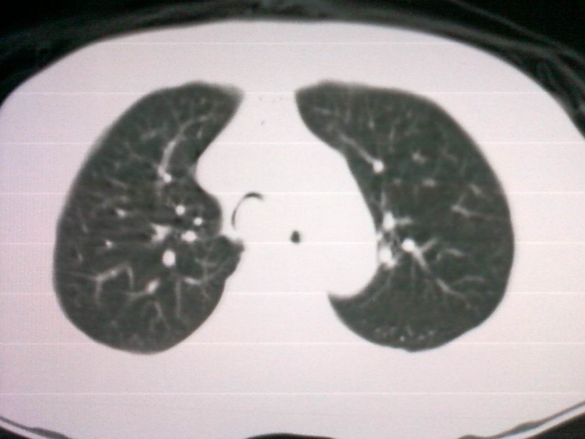仅见肺纹理影增重 纵膈淋巴结钙化