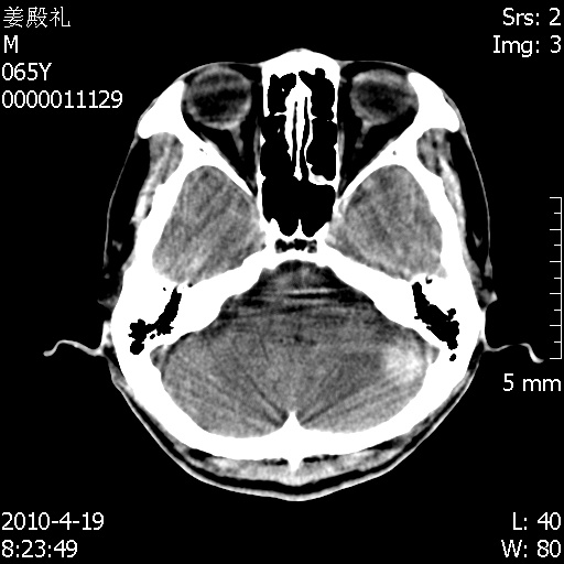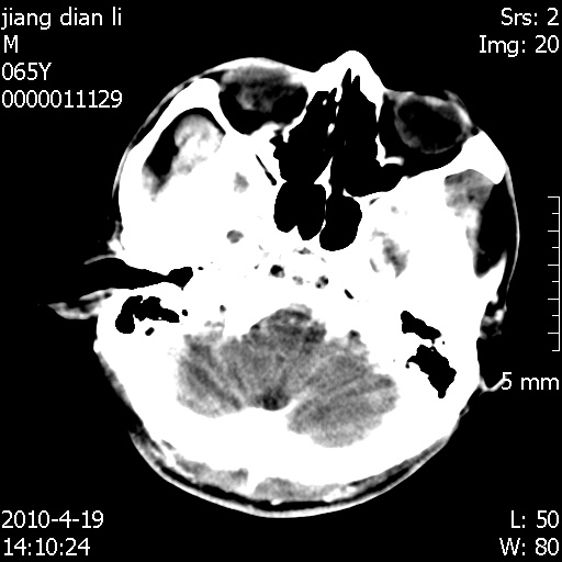 最后看到的病人右侧瞳孔呈针尖大小,估计是继发脑干梗死,而非脑疝死亡。