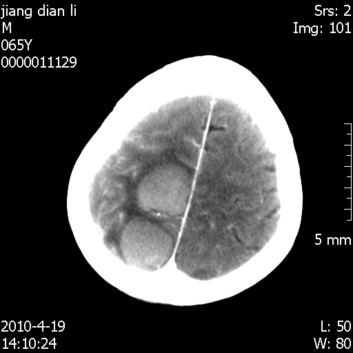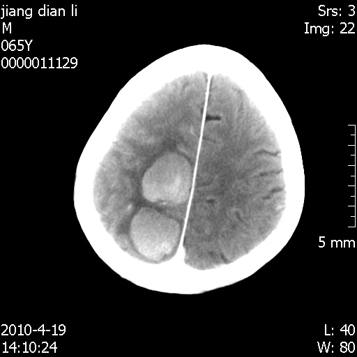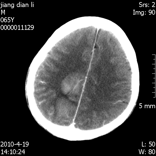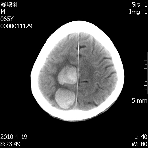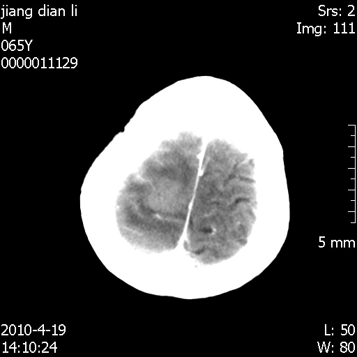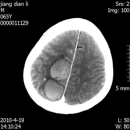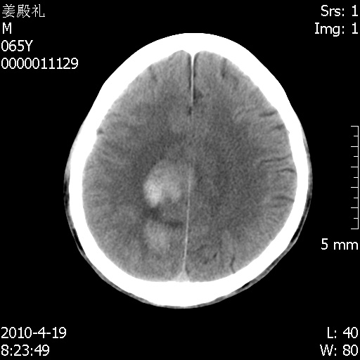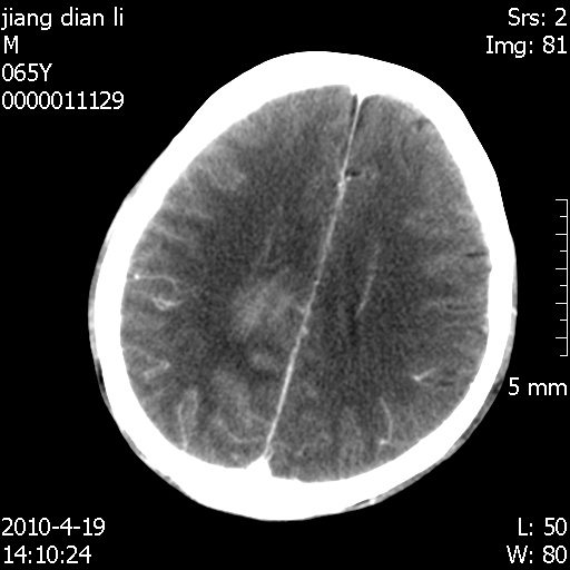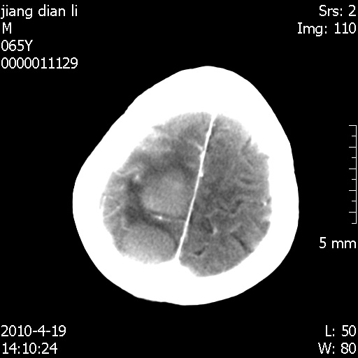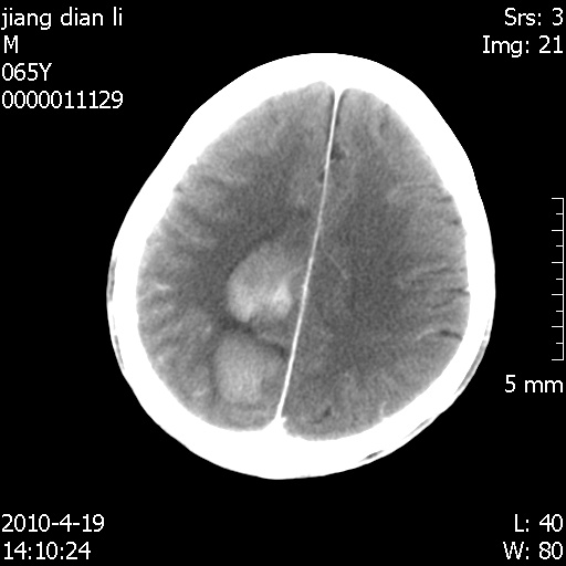 标题: CT25850:CT增强脑瘤没有强化,你看是什么?
