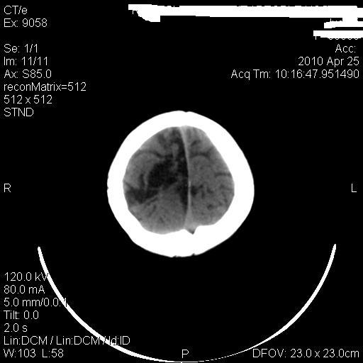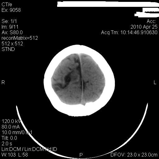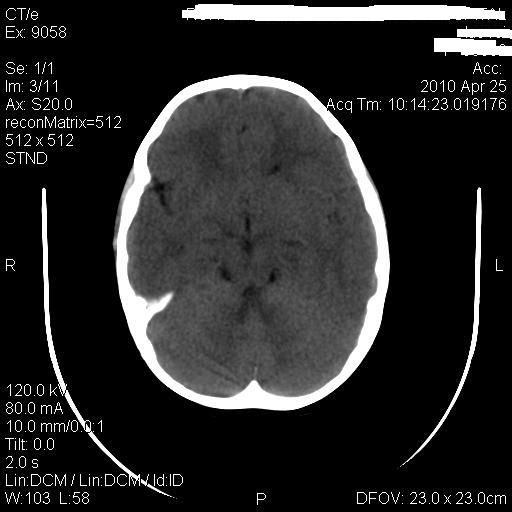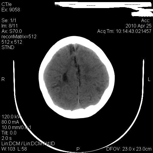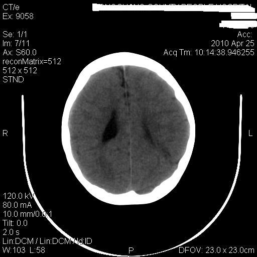 [br]考虑:1)右侧额顶叶脑软化灶并脑穿通畸形。2)胼胝体发育不良。