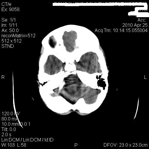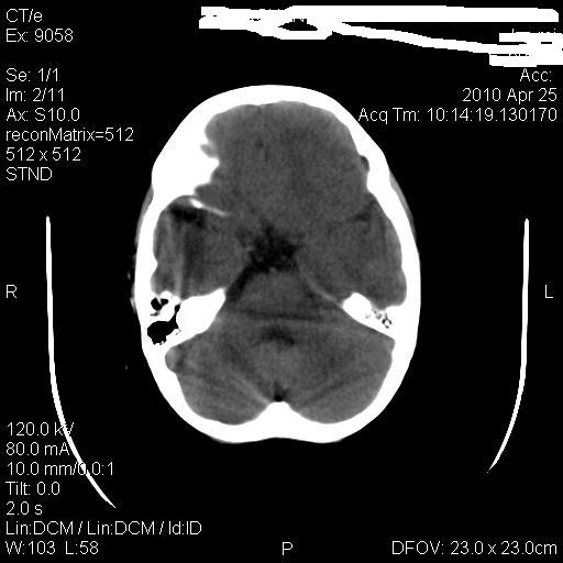 考虑右侧额顶叶脑软化灶并脑穿通畸形