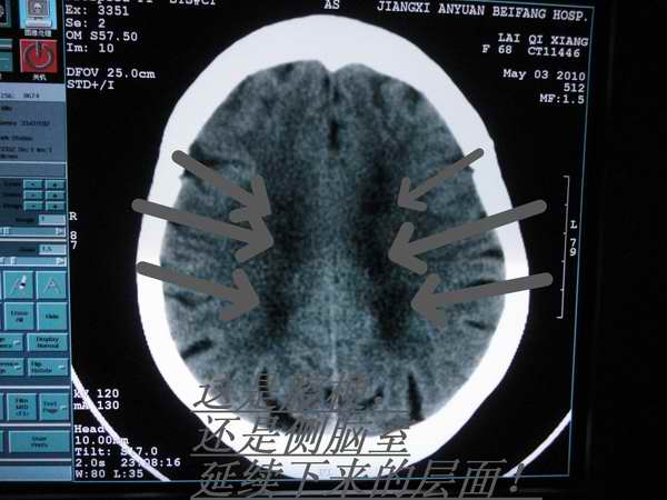 箭头所指是腔梗病灶,还是侧脑室延续下来的层面!