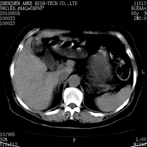 女,65岁。乳腺ca术后多年。现在剧烈腹痛待查。b超示胆囊炎、胆结石。