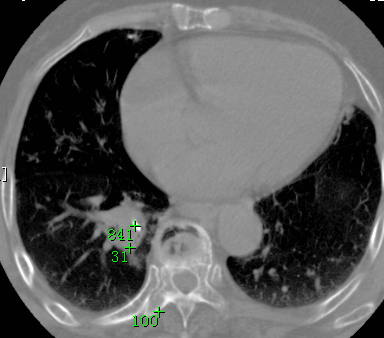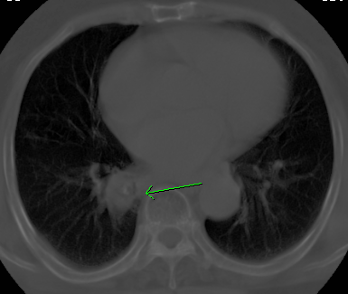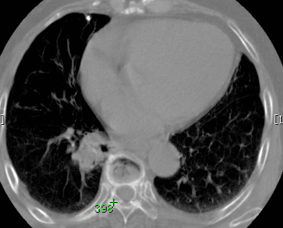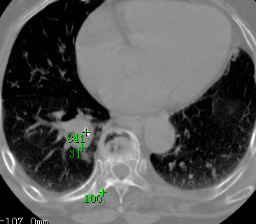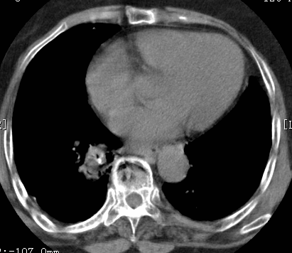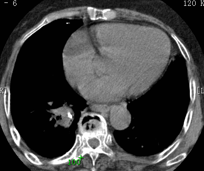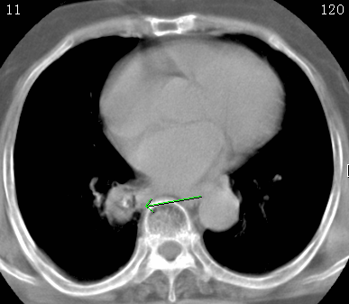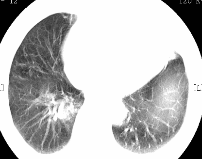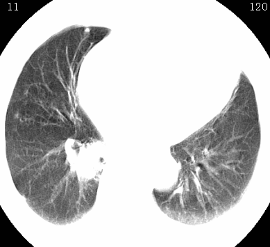 考虑1、周围型肺癌,2肺静脉畸形,前者可能大,建议增强检查。支持!