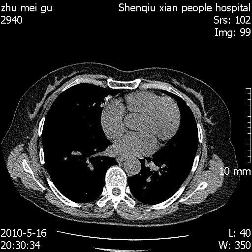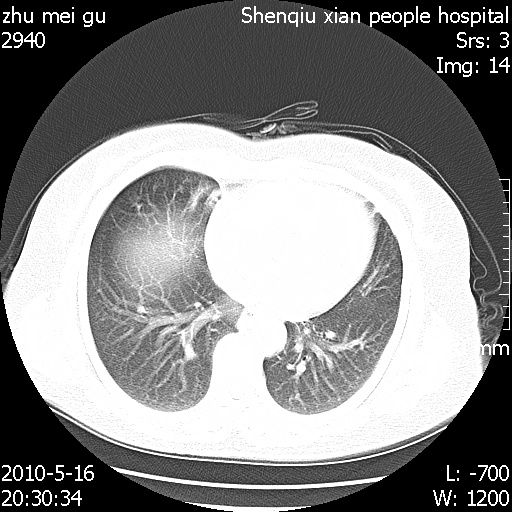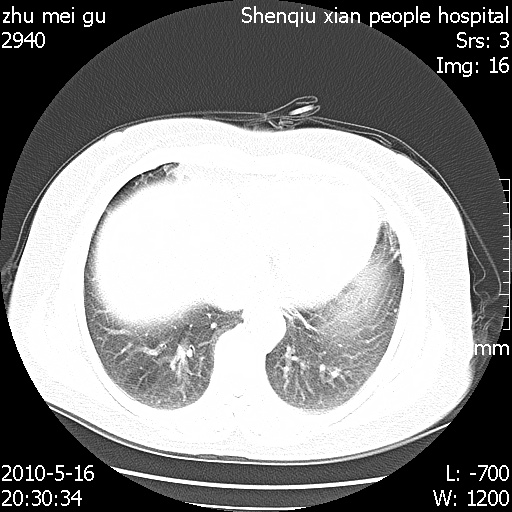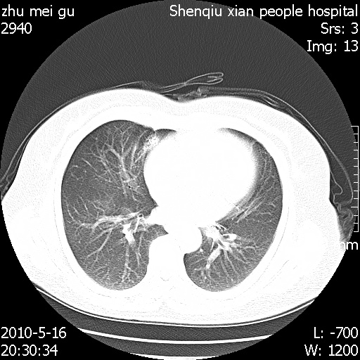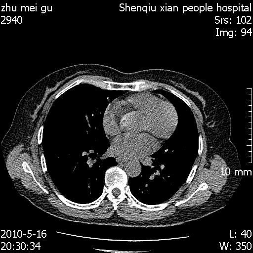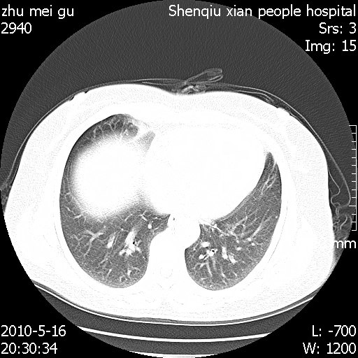 以下是引用dyqct在2010-5-29 14:58:00的发言:[br]图像不全。右中叶内侧段纤维、钙化灶。